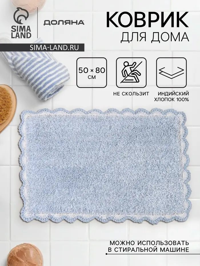 Коврик для дома Доляна «Тэя», 50×80 см, голубой
