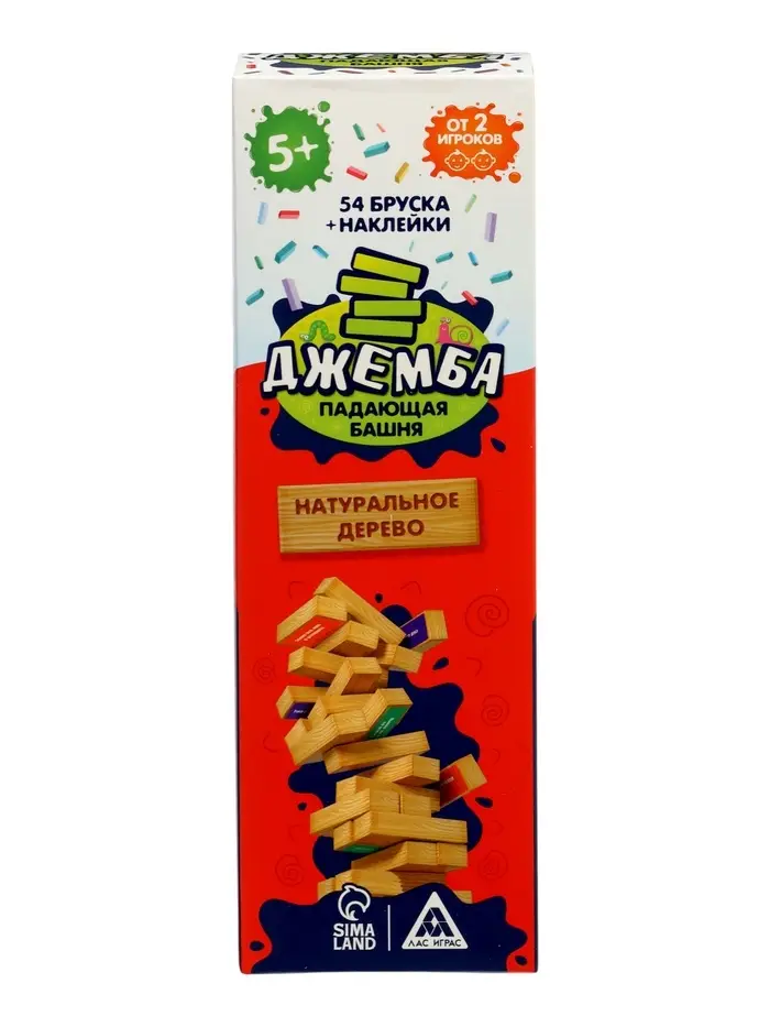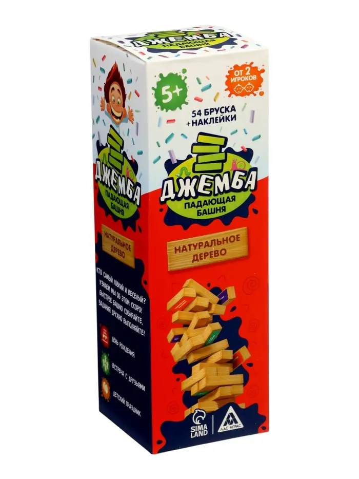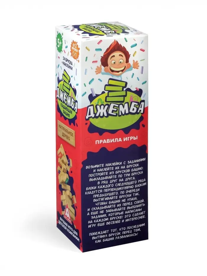 Дженга падающая башня «Джемба» с фантами, 54 бруска, 5+