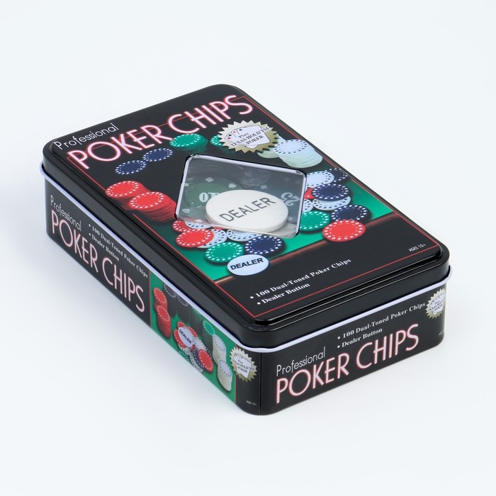 Покер, набор для игры, фишки с номиналом 100 шт, 11.5 х 19 см