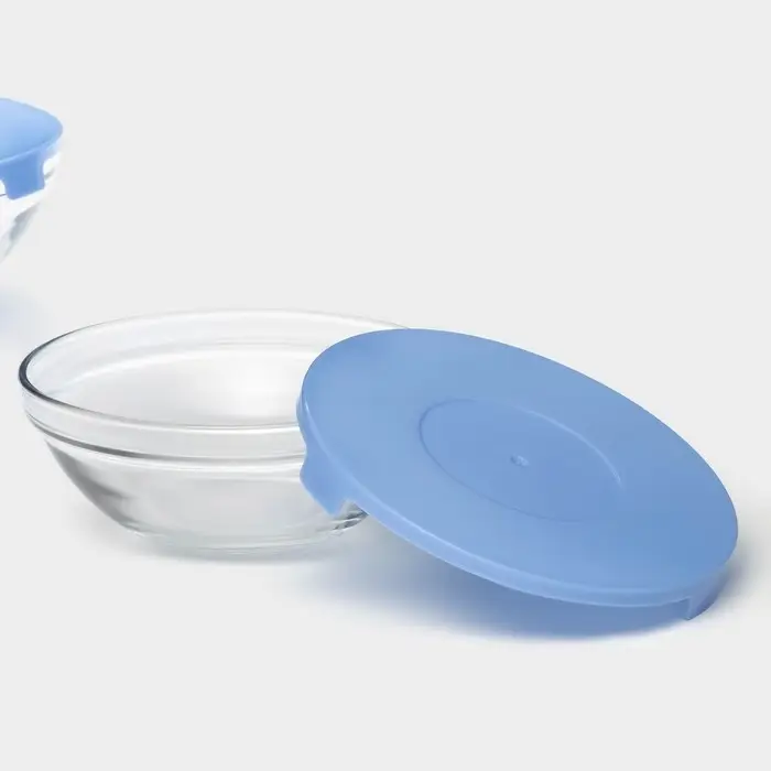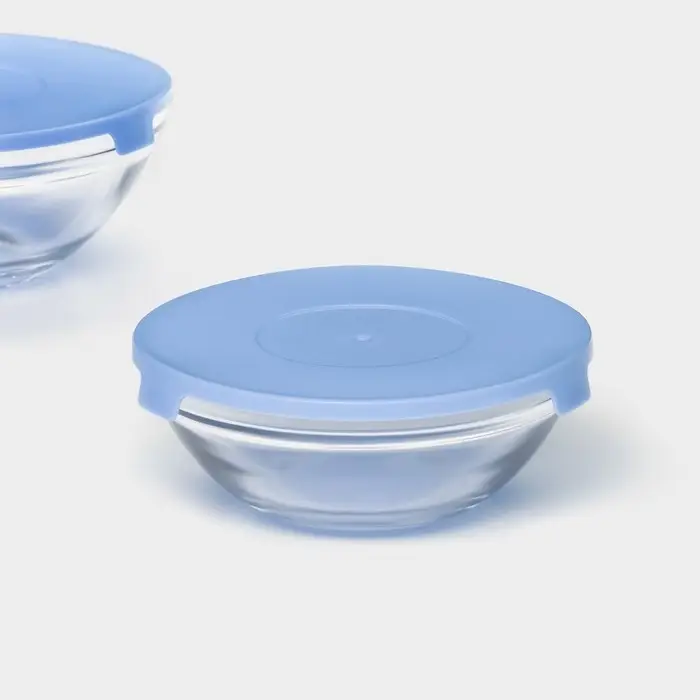 Салатники Доляна «Классика» с крышками, набор 5 шт.: 900/500/350/200/130 мл, стекло, голубые