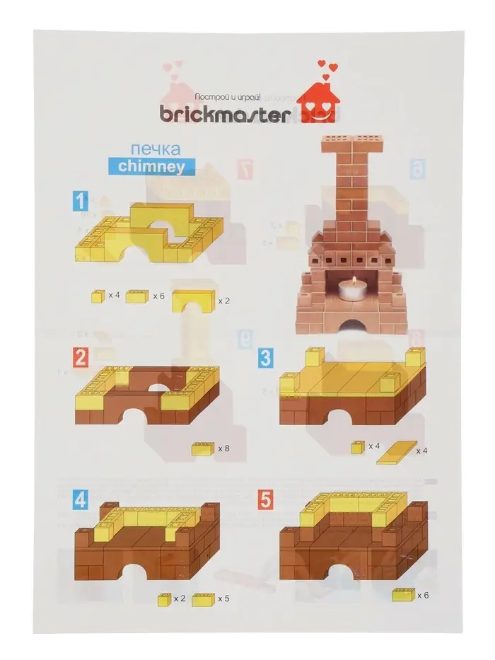 Brickmaster – это уникальный эко-конструктор для детей, состоящий из настоящих кирпичиков! Способствует развитию мелкой моторики, воображения, игровой деятельности, формированию сенсорных эталонов цвета, величины и формы, пространственного ориентирования, комбинаторных способностей.