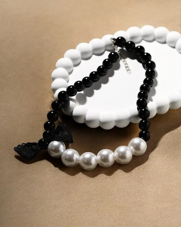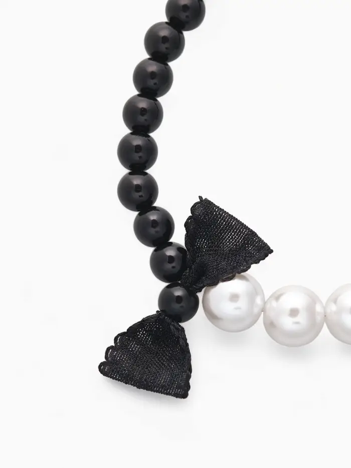Бусы «Бантик», жемчужины с завязкой, L= 40 см, черный, белый