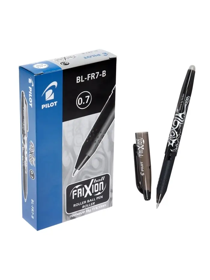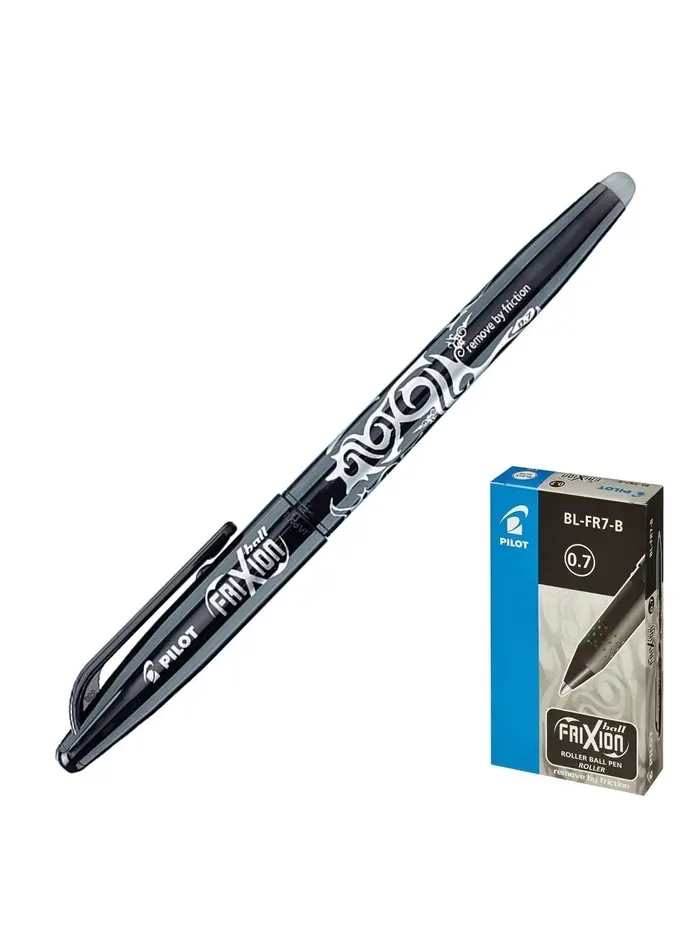 Стираемая ручка Pilot. Frixion, гелевая, чёрный стержень BL-FR-7 (B), узел 0.7 мм