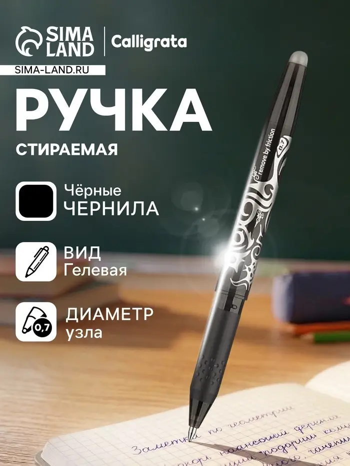 - Стираемые гелевые чернила классического чёрного цвета.