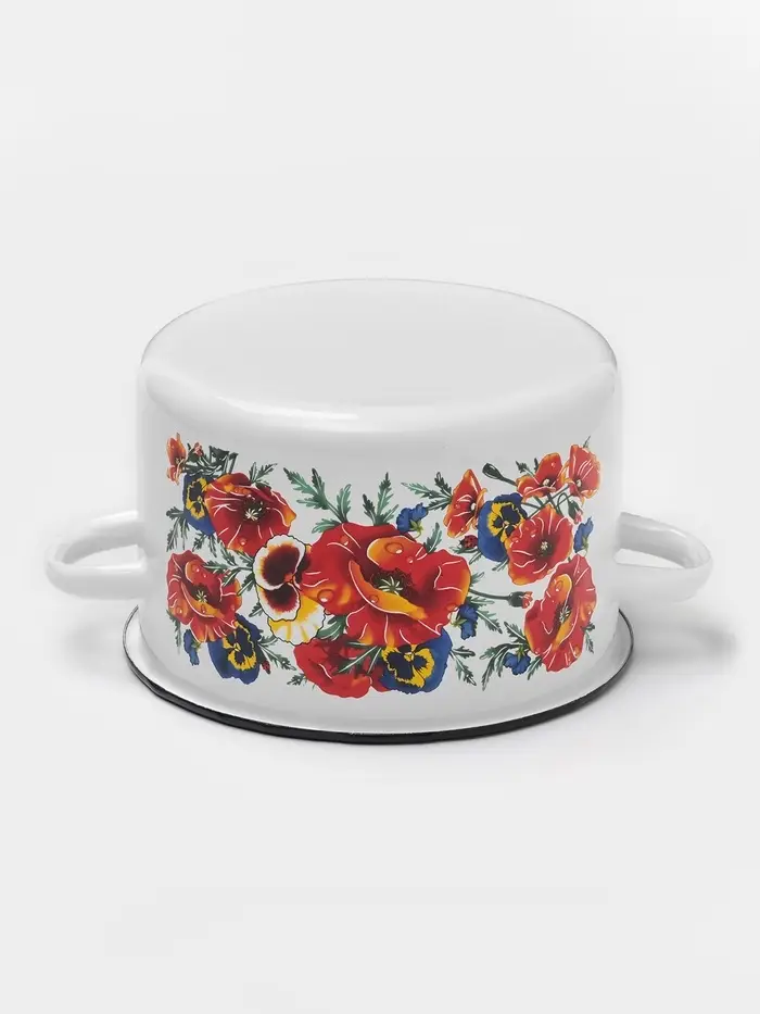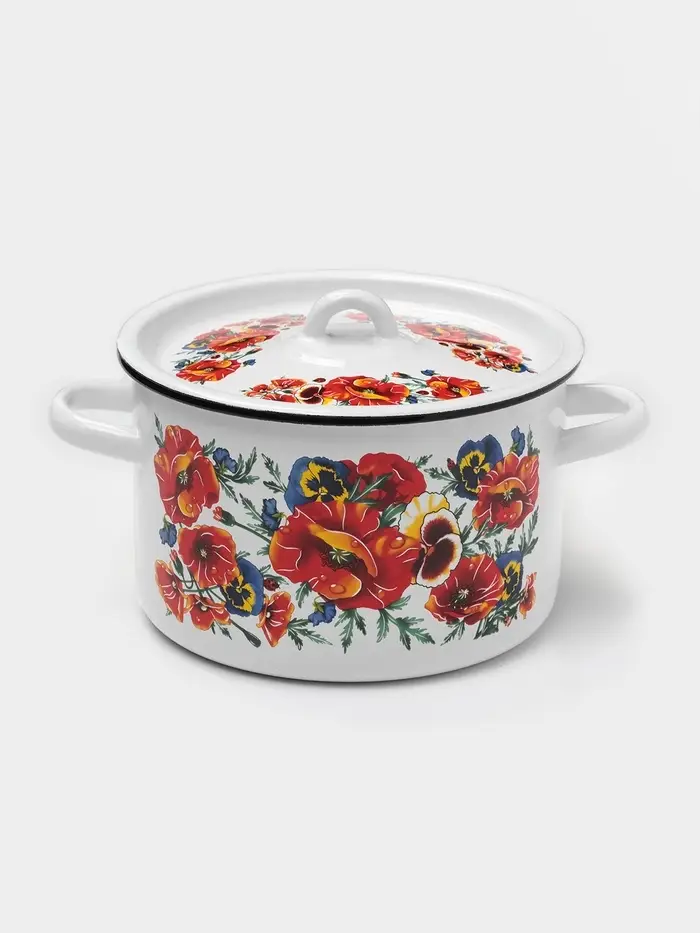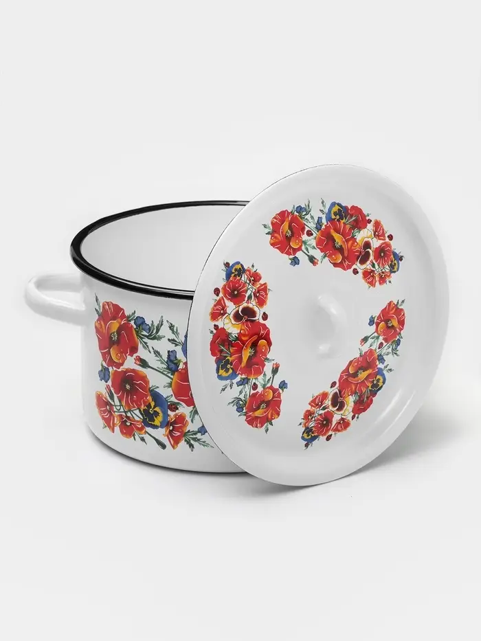 Кастрюля эмалированная «Маки Мечта», 2.9 л, d=20 см, с крышкой, белая