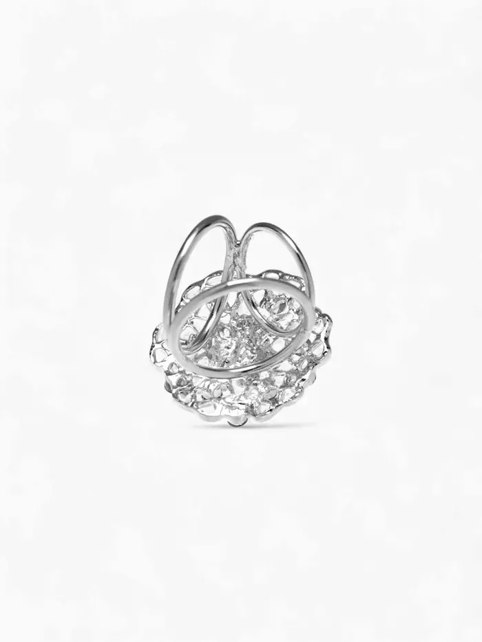 Кольцо для платка «Цветы Ажур», белое в серебре