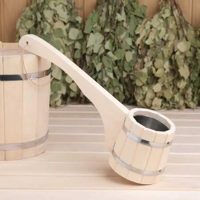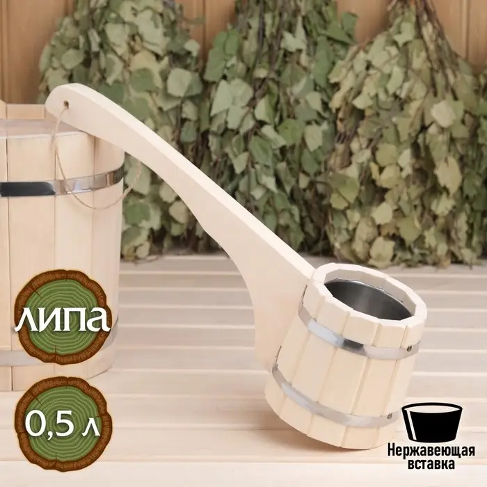 Ковш - черпак для бани и сауны, 1.5 л, липа, нержавеющий обруч, 48 см, 855 г, «Добропаровъ»
