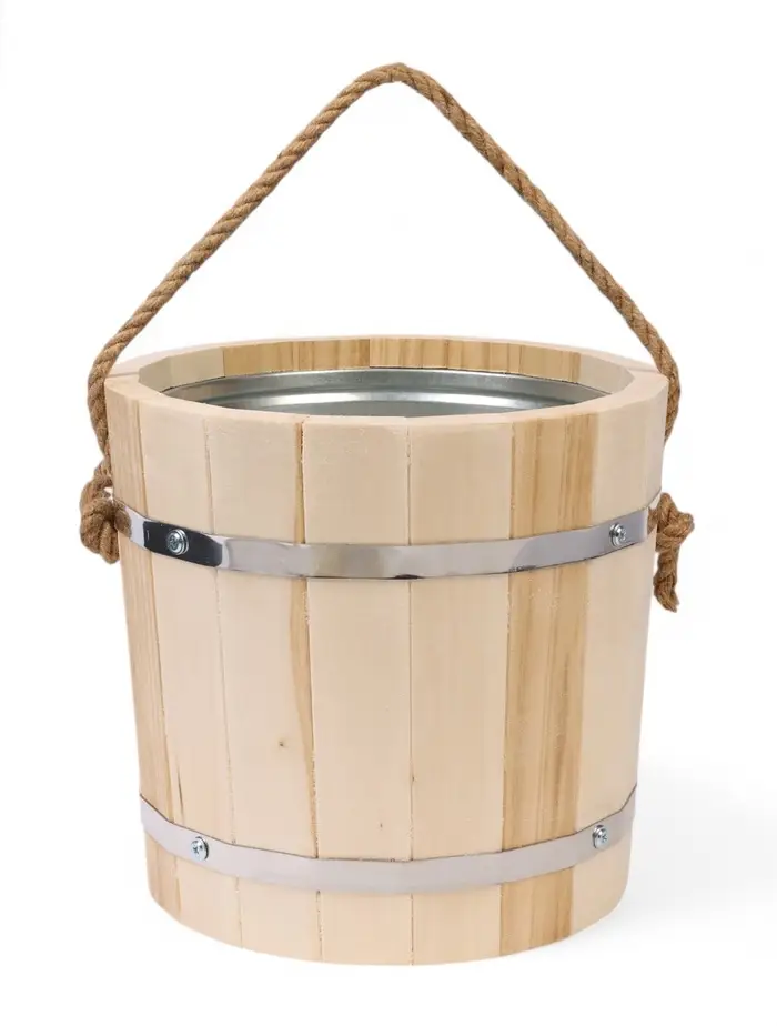 Ведро для бани и сауны, 10 л, деревянное, оцинкованная вставка, ручка - верёвка, «Добропаровъ»