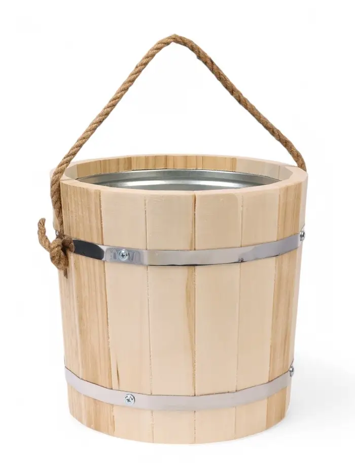 Ведро для бани и сауны, 7 л, липа, оцинкованная вставка, ручка - верёвка, «Добропаровъ»