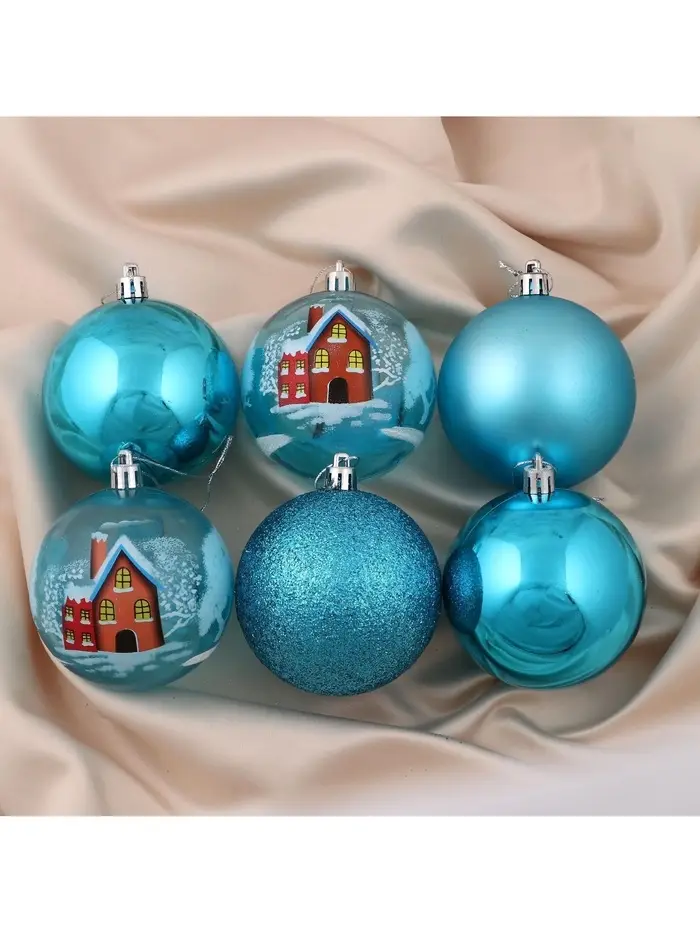 Ёлочные игрушки «Зимний домик», шары новогодние, d=8 см, набор 6 шт., голубой