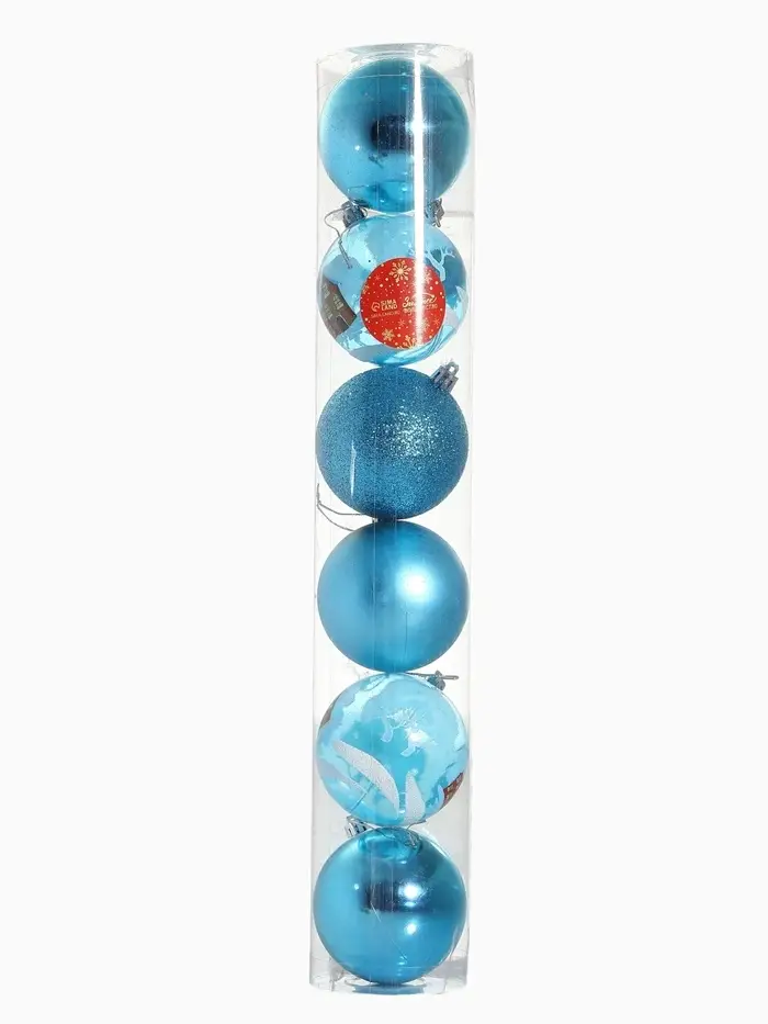 Новогодние шары «Зимний домик» — это стильный и выразительный набор для украшения ёлки в голубой гамме. В комплекте 6 пластиковых игрушек диаметром 8 см с рисунком, выполненных в форме шара и оформленных в духе шебби-шик и фьюжн-стиля. Это выбор тех, кто любит создавать зимнюю атмосферу праздника с акцентом на свет, форму и добрые детали.