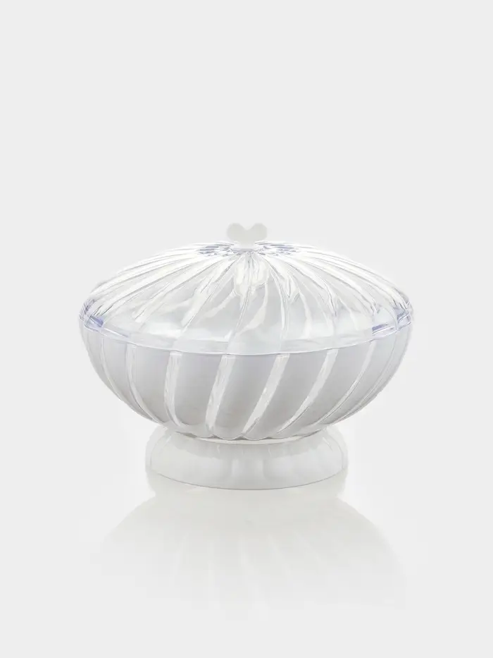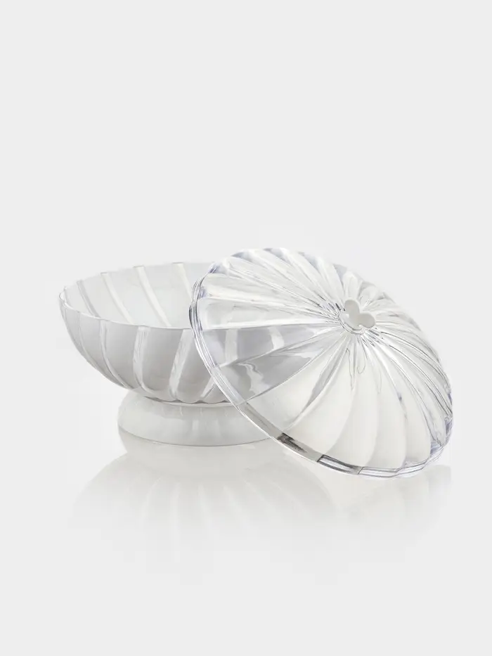 Ваза «Грация» с крышкой найдёт место на любом столе — для сочных яблок после обеда или свежей буханки к ужину. Белоснежная гладкая поверхность вписывается в кухню любого стиля, а закрывающаяся конструкция сохраняет продукты от высыхания и посторонних запахов. Лёгкий пластик не боится ежедневного использования и спокойно переносит мытьё в посудомоечной машине.