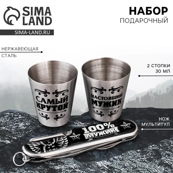 Подарочный набор мужской «Самый крутой»: нож мультитул, стопки 2 шт. × 30 мл