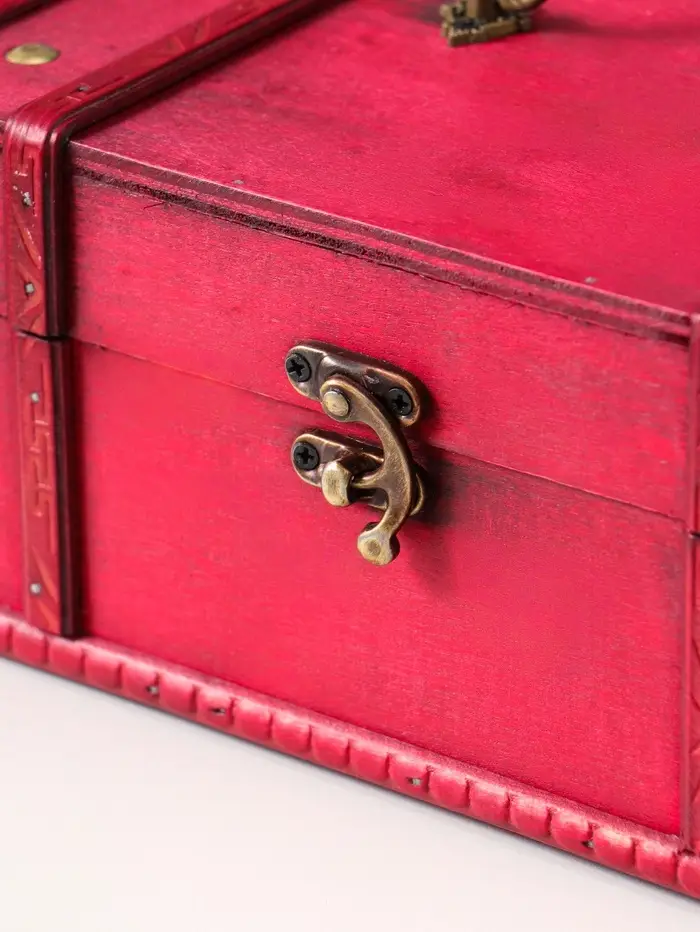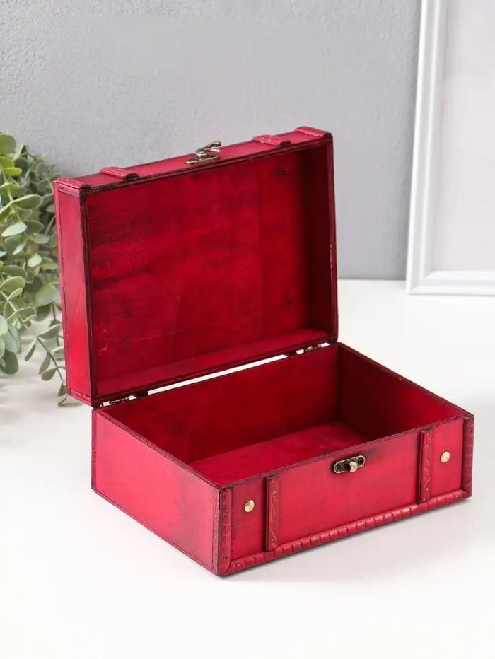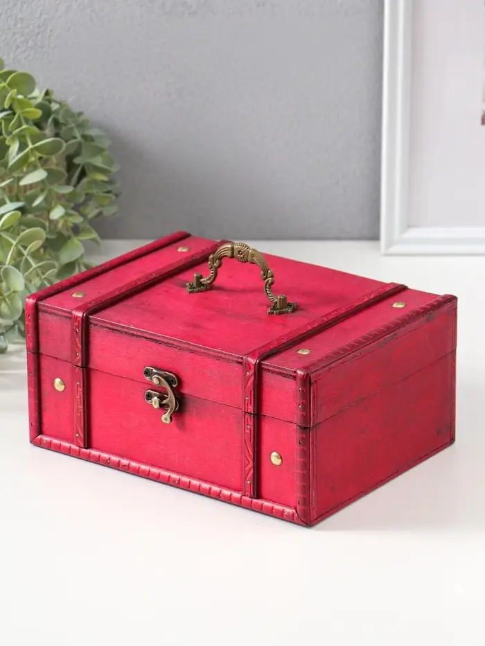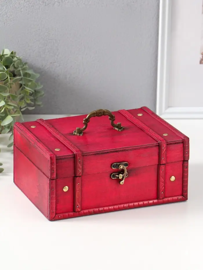- Классическая форма сундучка с металлическими клёпками и замочком создаёт атмосферу средневековой надежности.