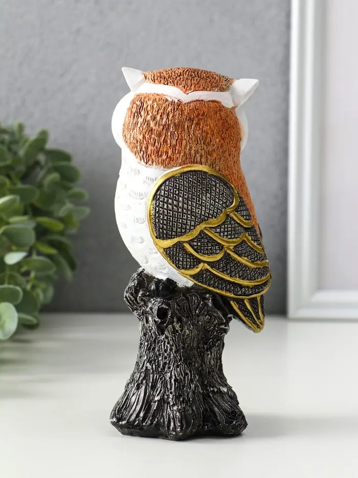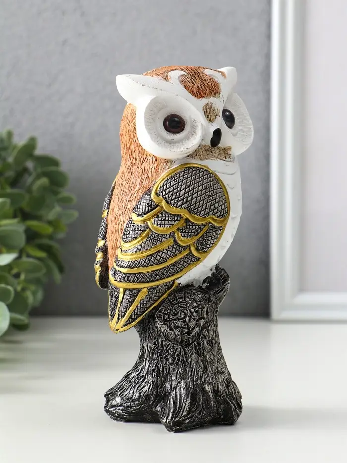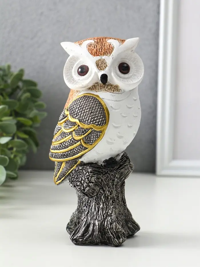 Эта фигурка совы из полистоуна — элегантный акцент для интерьера и символ мудрости, который подходит для любого повода. Её сдержанный дизайн с позолотой на белом фоне вносит в пространство ноту утончённости и спокойствия.