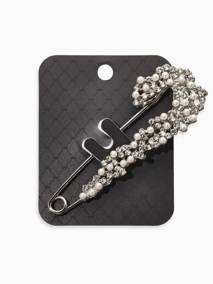 - Абсолютная сочетаемость: белоснежный жемчуг и мерцающие кристаллы в сочетании с серебристым основанием являются беспроигрышным решением для любого типа одежды.
