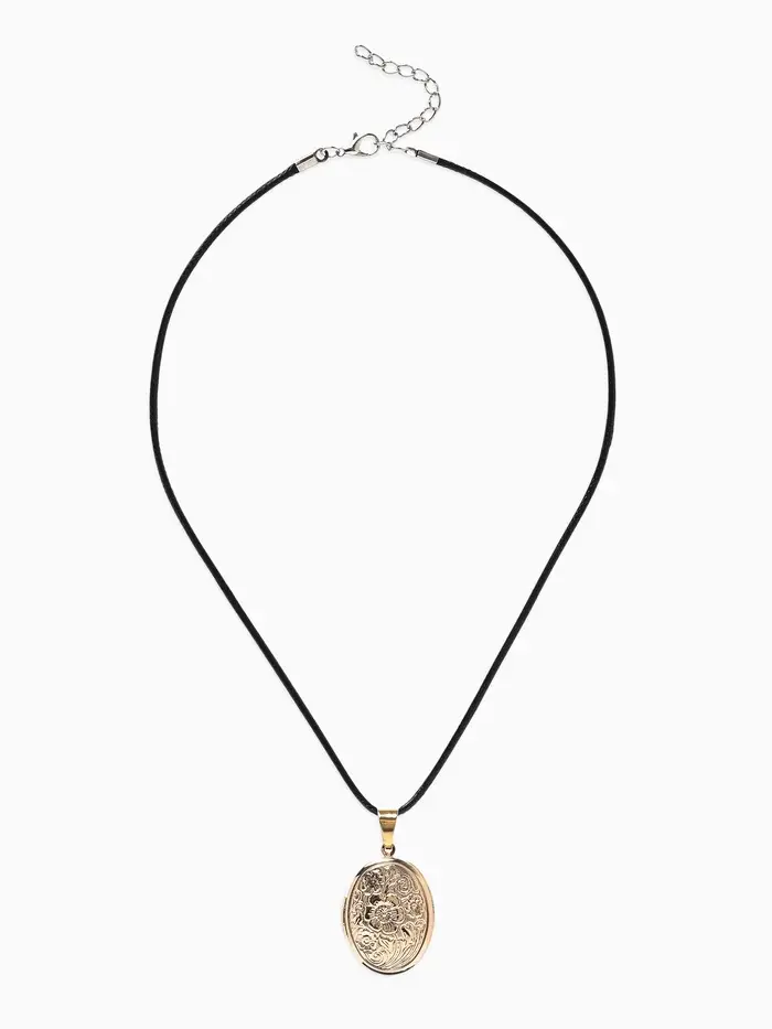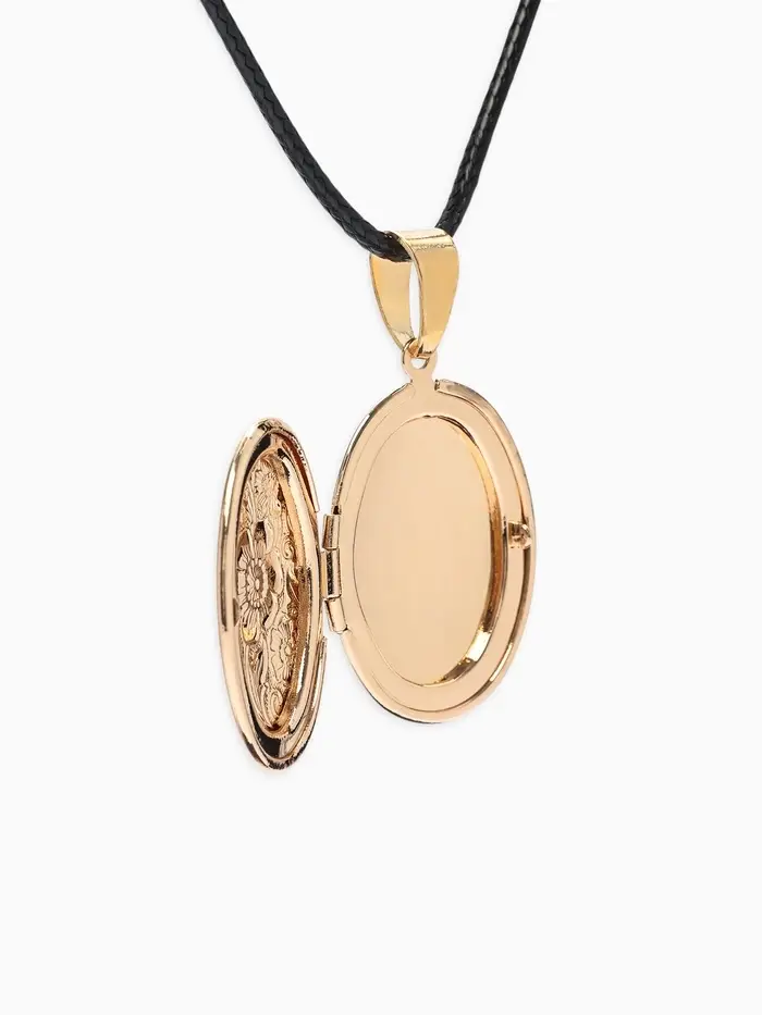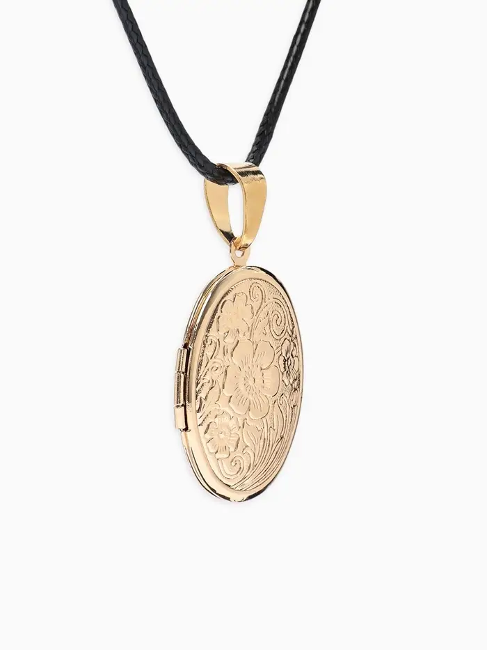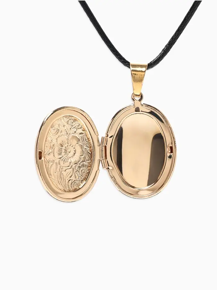 Создайте личный талисман памяти и тепла! Кулон для фотографий «Овал с цветами» — это элегантное украшение, сочетающее винтажный стиль и современные тенденции. Изделие выполнено в золотом цвете на фоне стильного черного текстильного шнурка длиной 45 см.