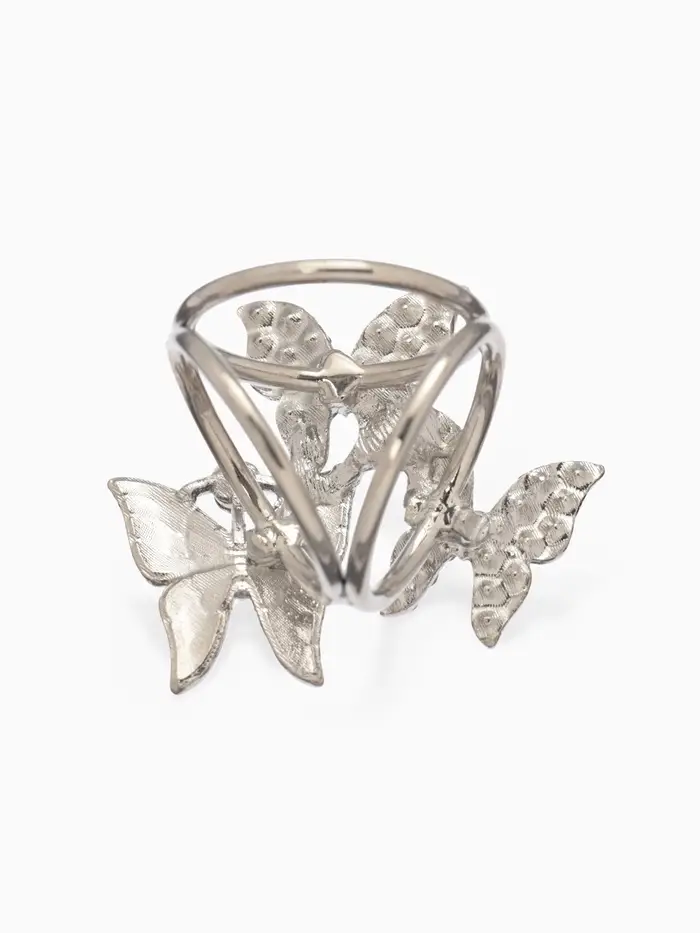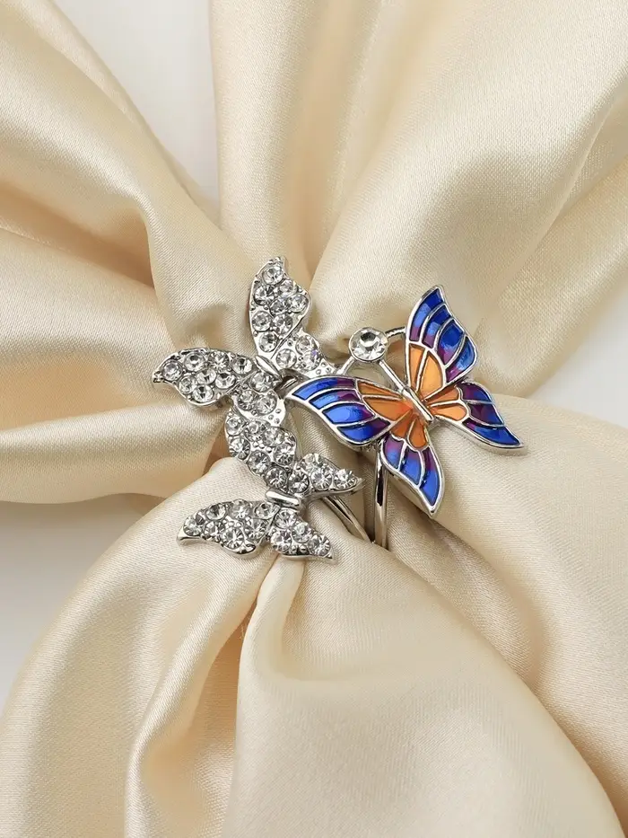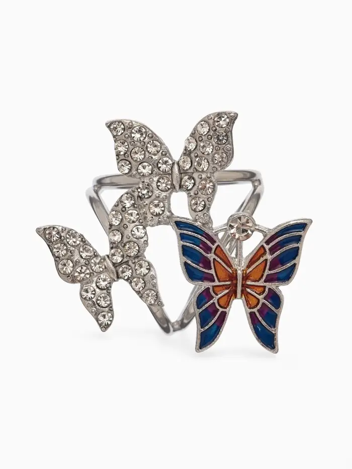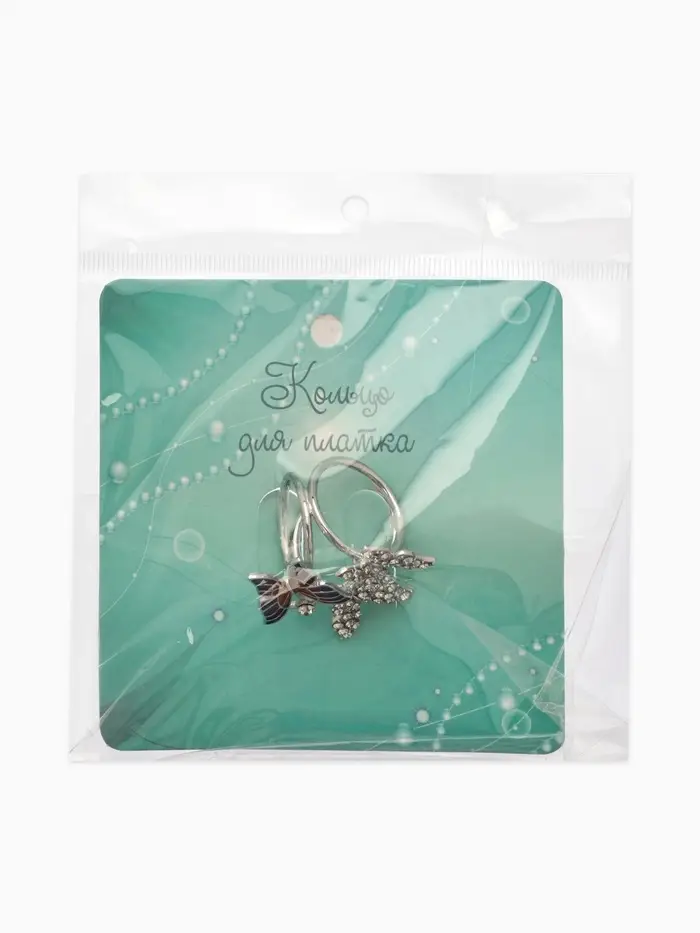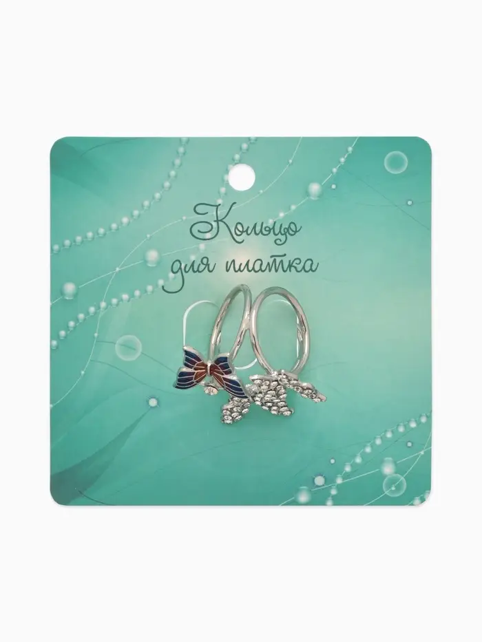 Кольцо для платка «Бабочки», цветное в серебре