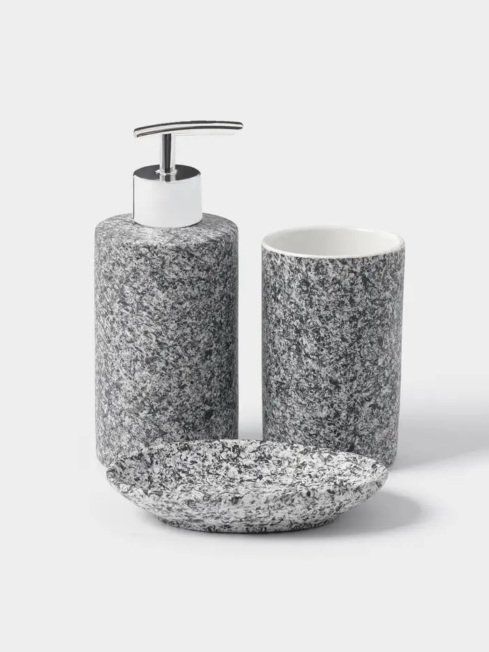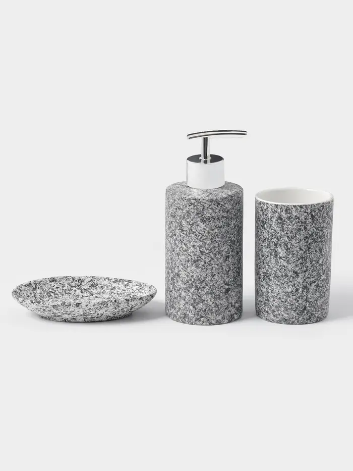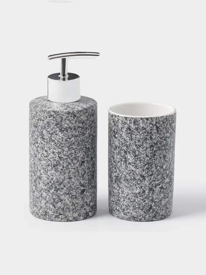Набор аксессуаров «Гранит» — это не просто дополнение к интерьеру, а создание атмосферы уюта и гармонии. Подарите себе ежедневное удовольствие от использования красивых и практичных предметов в вашей ванной комнате!