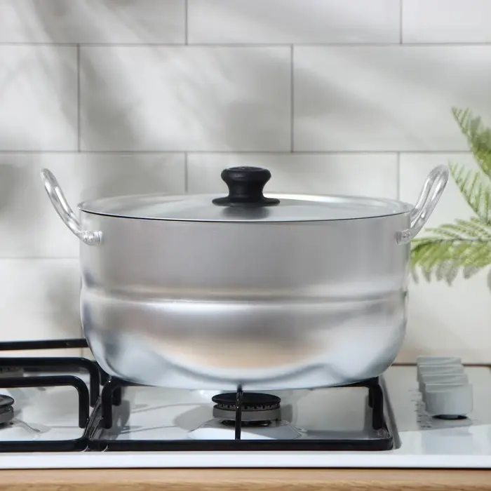 Легкость алюминиевой посуды снижает нагрузку на руки даже при работе с полным объемом жидкости. Гладкие стенки без декора упрощают уход: остатки пищи легко удаляются губкой. Такая емкость выручит как в будние дни для быстрого ужина, так и во время праздников для приготовления больших порций гарниров или напитков. Простая конструкция без лишних деталей служит долго и не теряет своих свойств при регулярном использовании.