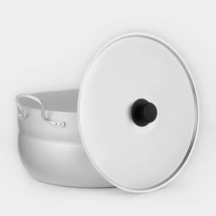 Использование легкой алюминиевой посуды снижает нагрузку на руки при переноске тяжелых продуктов и готовых блюд. Простая форма без рисунков облегчает уход: гладкие стенки легко очищаются от загрязнений. Такая емкость выручит при организации праздничного застолья или ежедневном приготовлении пищи для большой семьи, экономя время хозяйки благодаря своей вместительности.