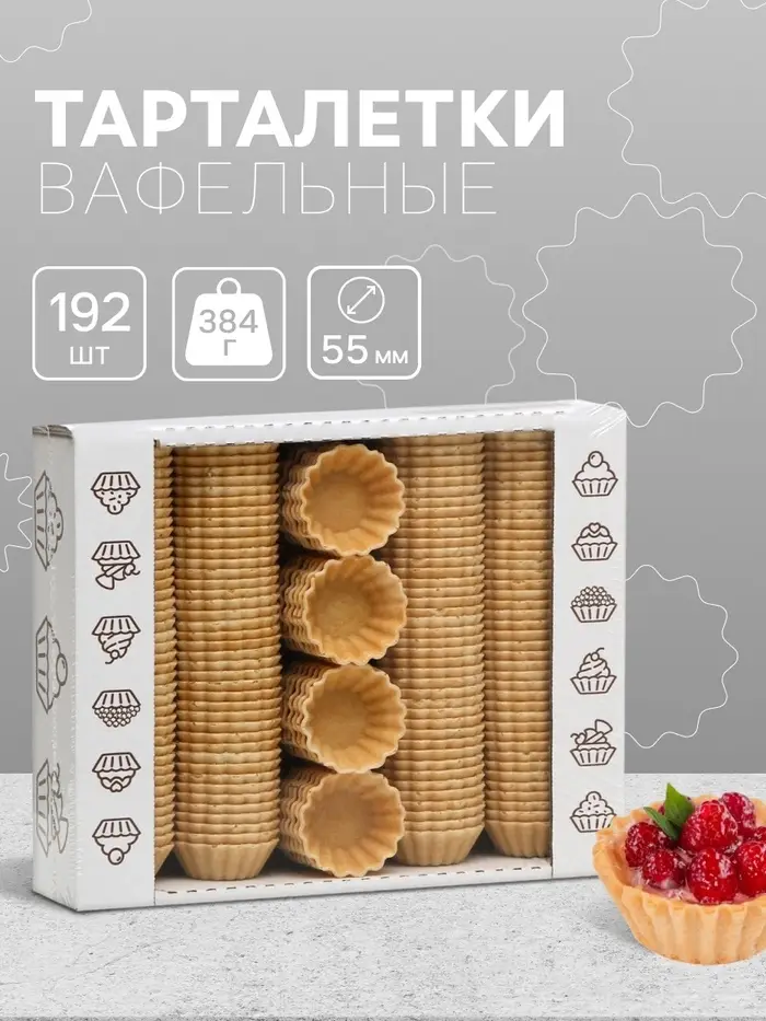 Вафельные тарталетки, 192 шт., d=55 мм, 384 г