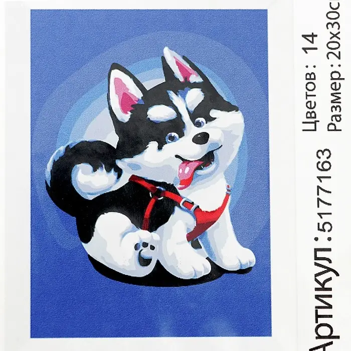 Картина по номерам на холсте с подрамником «Щенок хаски», 30×20 см понравится и детям, и взрослым.