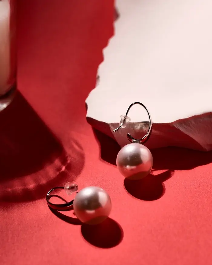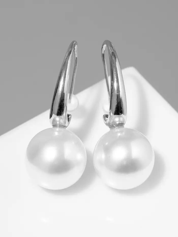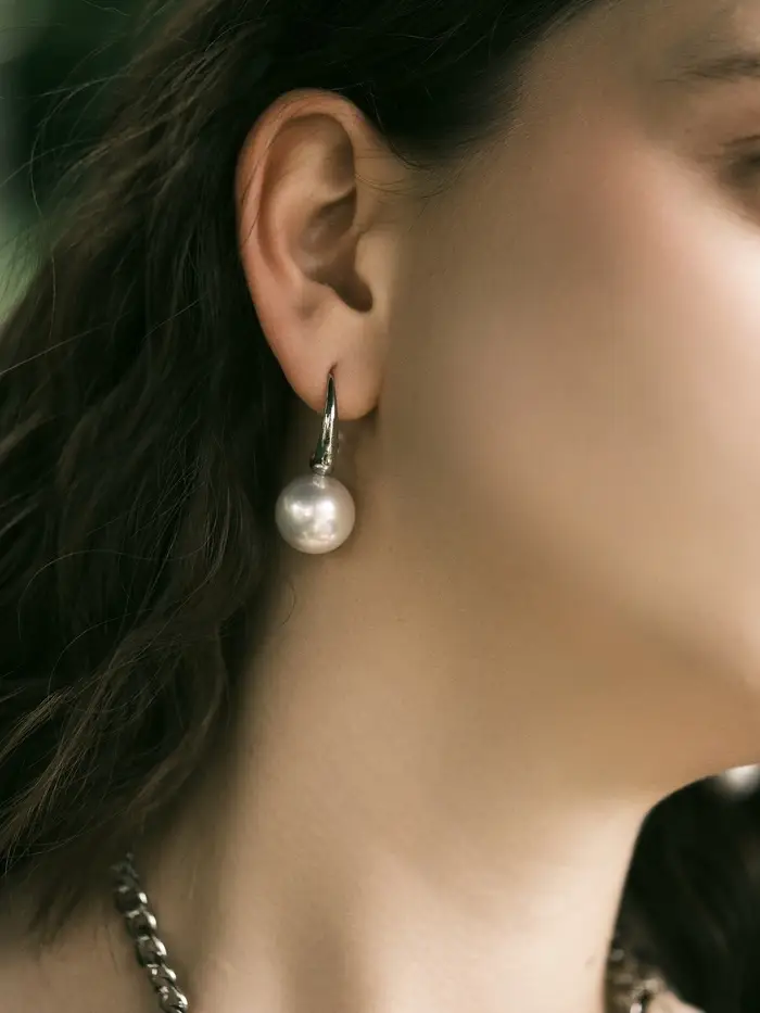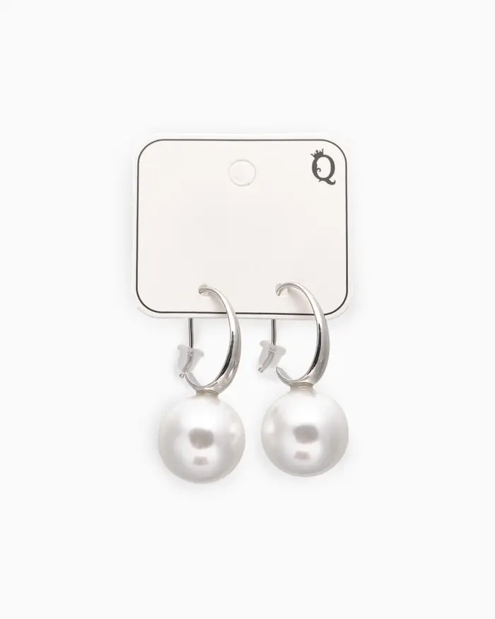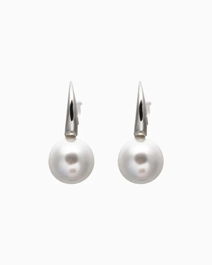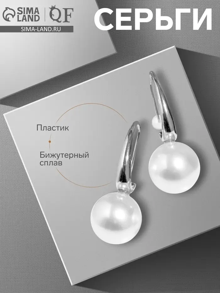 Серьги с жемчугом «Капля», полукруг, белые в серебре