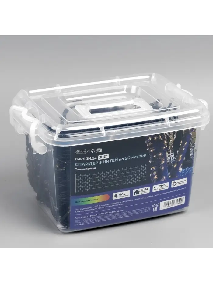 Гирлянда «Клип-лайт» 5 нитей по 20 м, IP44, УМС, тёмная нить, 665 LED, свечение мульти, 24 В