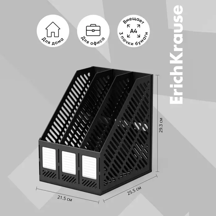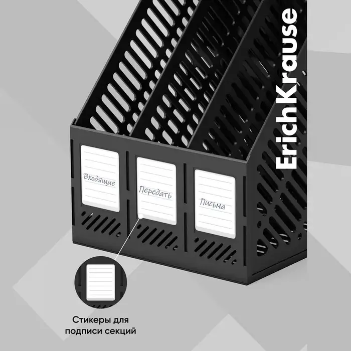 Лоток для бумаг ErichKrause, А4, сборный, вертикальный, 3 отделения, чёрный