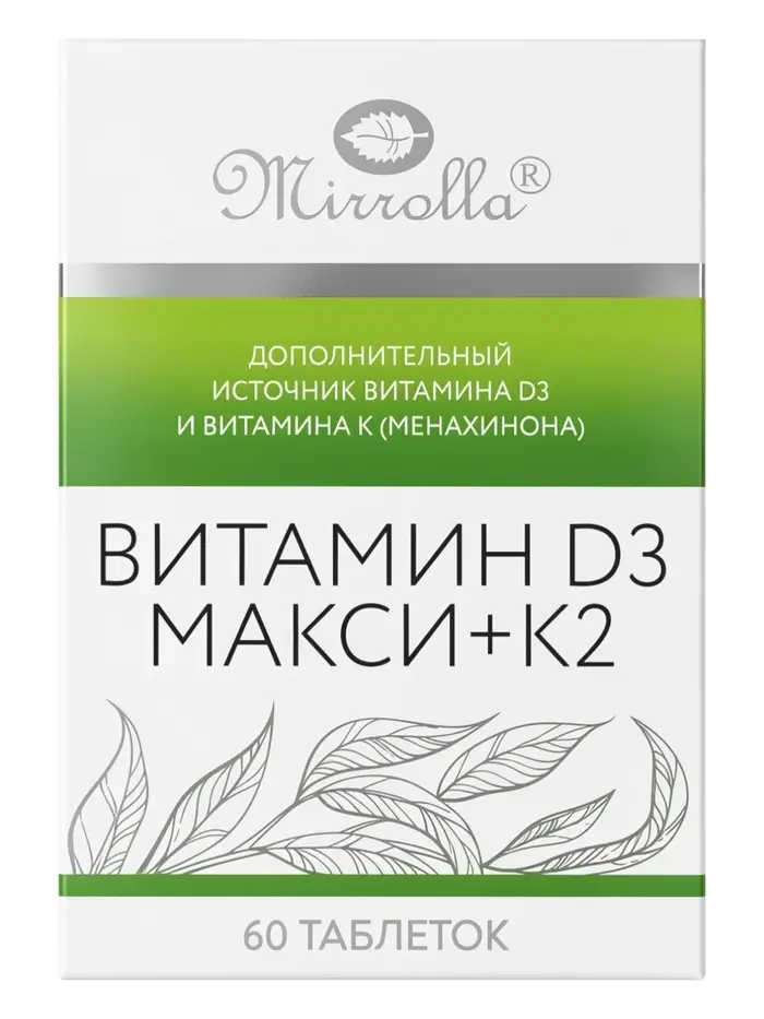 Витамин d=3 Mirrolla 2000 ME + K2 100 мкг, 60 таблеток
