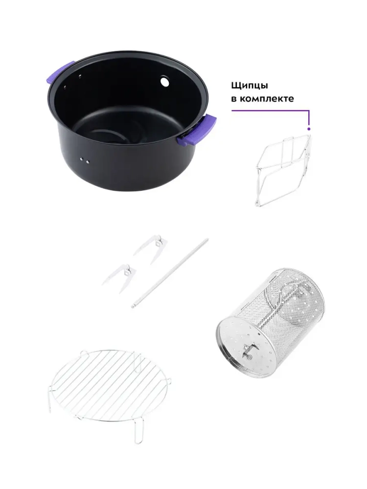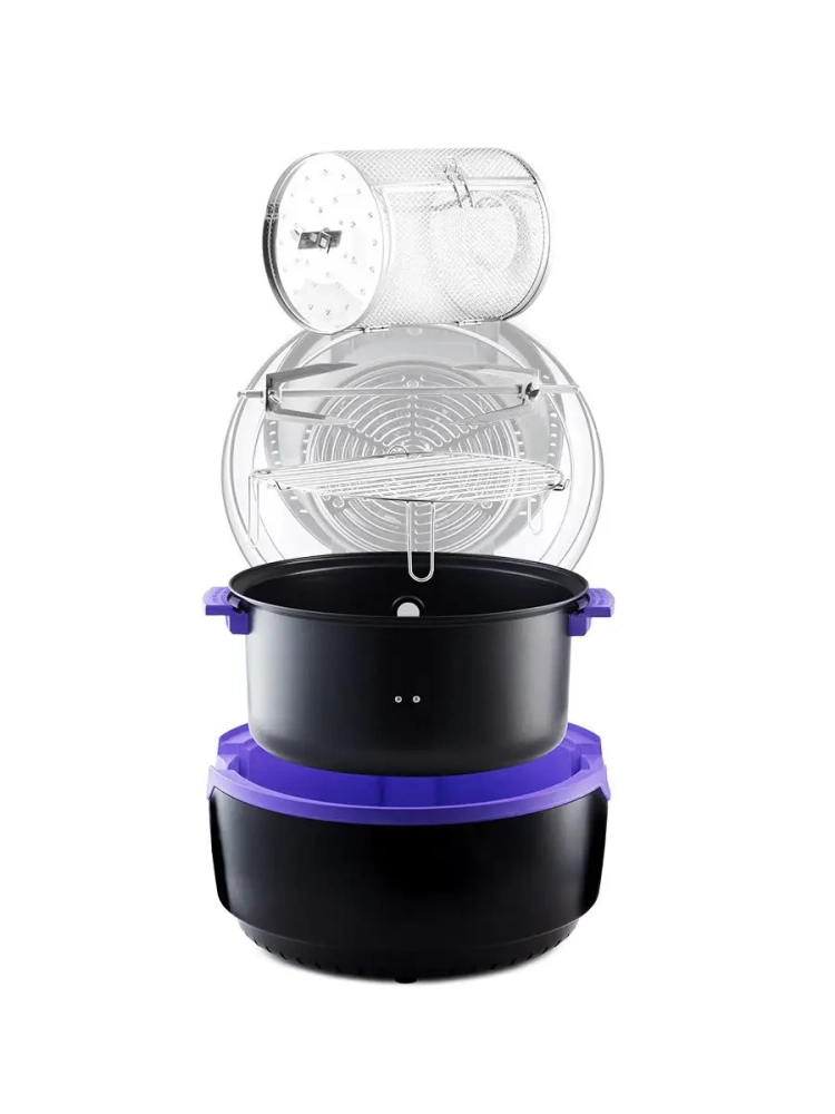 Аэрогриль электрический Kitfort КТ-2219 — это современный прибор, который станет незаменимым помощником на вашей кухне. С его помощью можно готовить разнообразные блюда без добавления масла, что делает их более полезными и вкусными. Этот электрический аэрогриль оснащен электронным управлением и дисплеем, что упрощает процесс приготовления. Идеальный подарок на любой случай: на Новый год, 23 февраля, 8 марта, день рождения, свадьбу или юбилей! В комплекте с прибором идут вертел для курицы, щипцы для продуктов и решетка. Объем чаши составляет 8 литров, что позволяет готовить большие порции за один раз. Галогеновая лампочка в центре ТЭНа подсвечивает продукты в чаше во время приготовления, а прозрачная часть крышки дает возможность наблюдать за процессом без необходимости открывать аэрогрильницу. Вращающаяся корзина крепится к вертелу с помощью специального винта и идеально подходит для приготовления картошки-фри или курицы на гриле. Ножки с присосками обеспечивают устойчивость прибора при открывании крышки. По окончании процесса аэрогриль автоматически отключается, что делает его использование безопасным и удобным. Этот электро прибор от Kitfort имеет 20 автоматических программ для различных блюд: от мяса до овощей. Решетка позволяет располагать продукты или термостойкие чаши прямо внутри грильницы. Поддон собирает излишки жира и жидкости во время готовки, облегчая чистку после использования. Настольный электрогриль Kitfort КТ-2219 — это идеальное решение для тех, кто ценит качество и удобство на своей кухне.