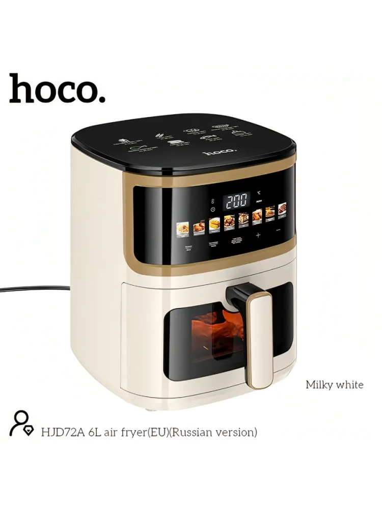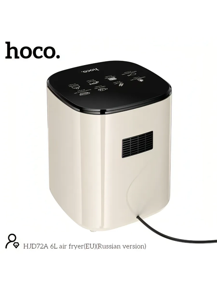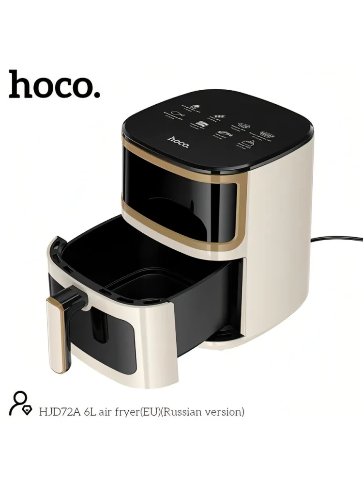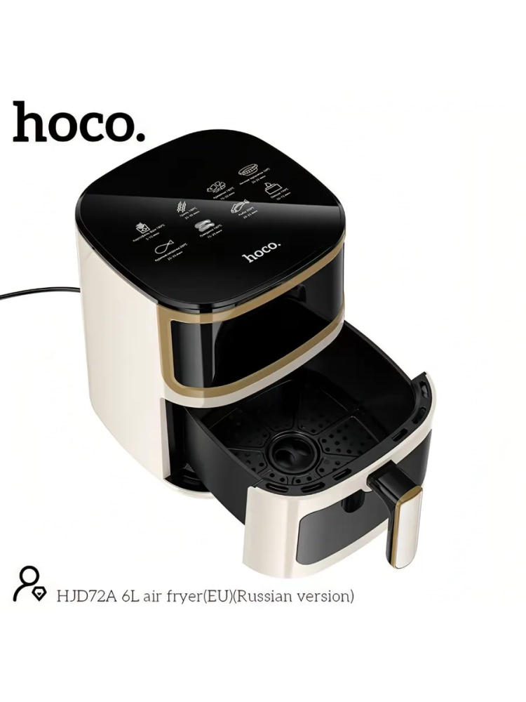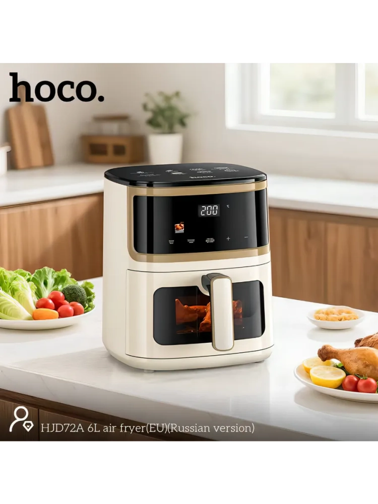Hoco HJD72A — аэрогриль для приготовления пищи без лишнего масла. Благодаря технологии циркуляции горячего воздуха блюда получаются с хрустящей корочкой снаружи и сочными внутри.