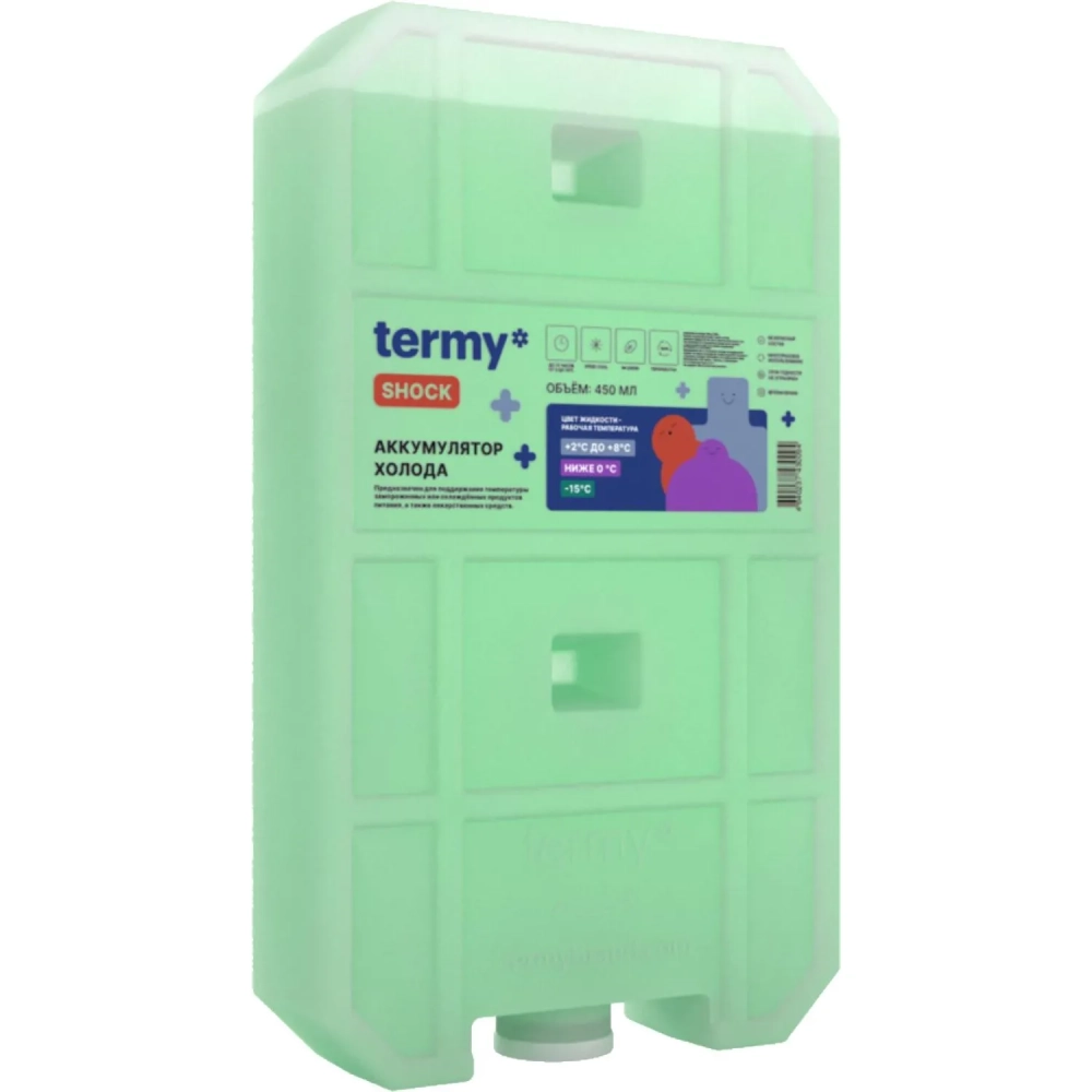 Аккумулятор холода 450мл Водно-Солевой 0 -15С_ Зеленый Пробка ТермиШок