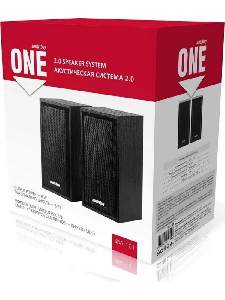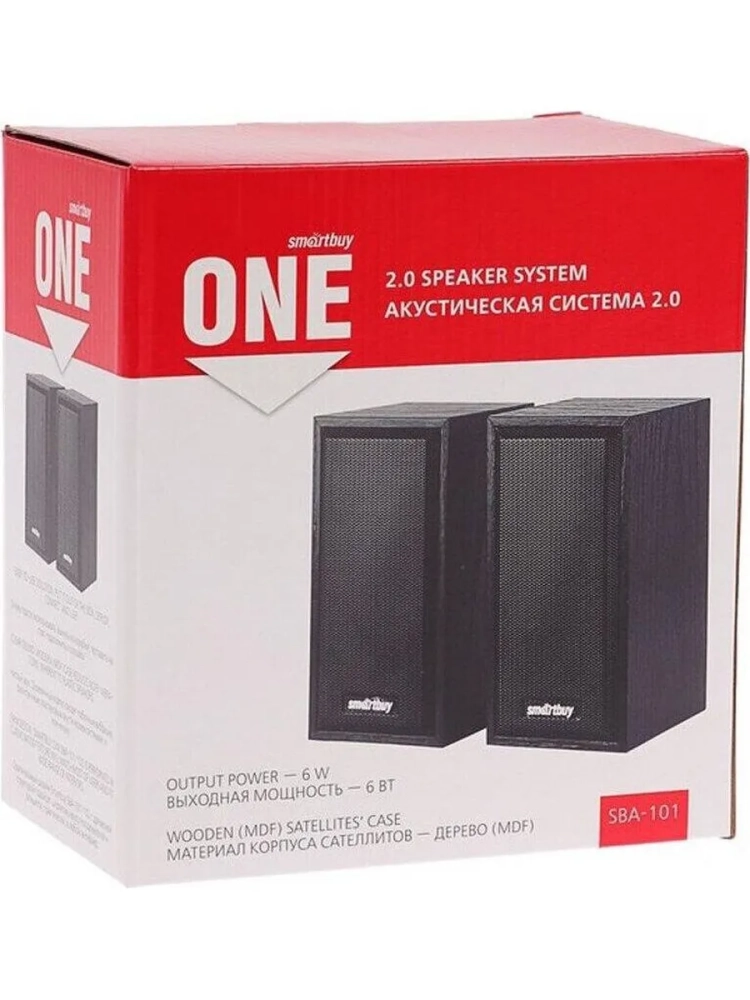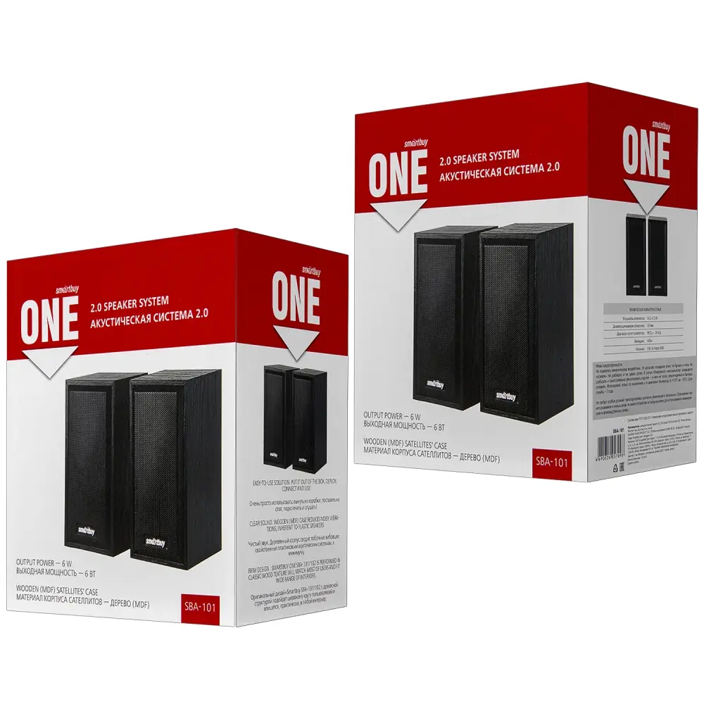 Акустическая система 2.0 SmartBuy ONE, дерево, 6 Вт, питание от USB, черная (SBA-101)/20