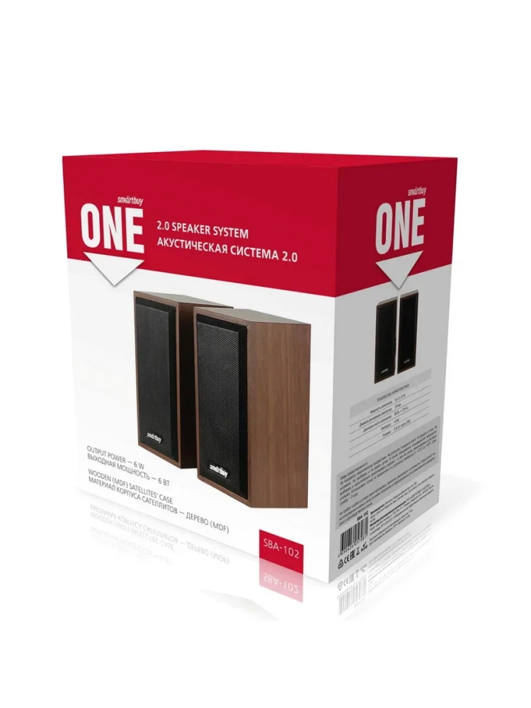 Акустическая система 2.0 SmartBuy ONE, дерево, 6 Вт, питание от USB, коричневая (SBA-102)/20