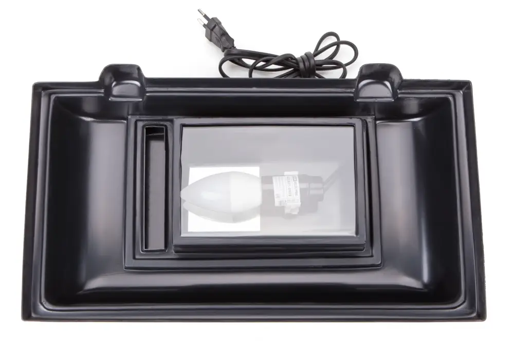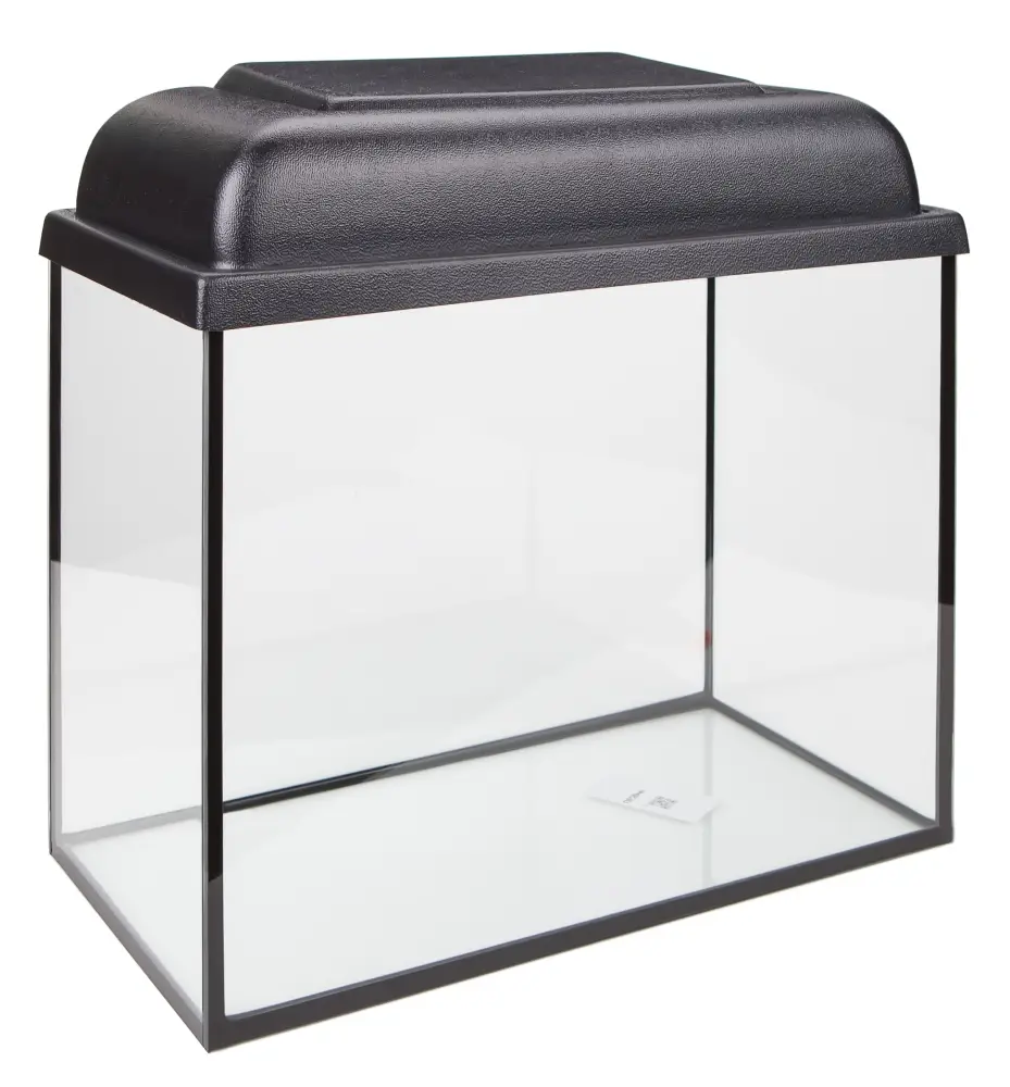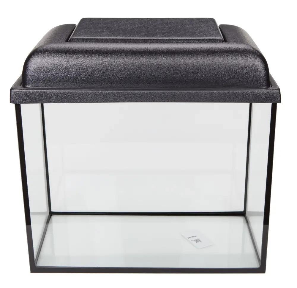 Аквариум с черной крышкой и диодной лампой.