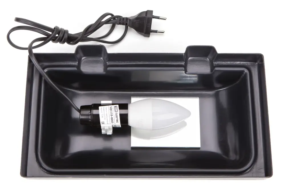Есть боковые отверстия для вентиляции и проводов, 1 диодная лампа (цоколь Е 14) .