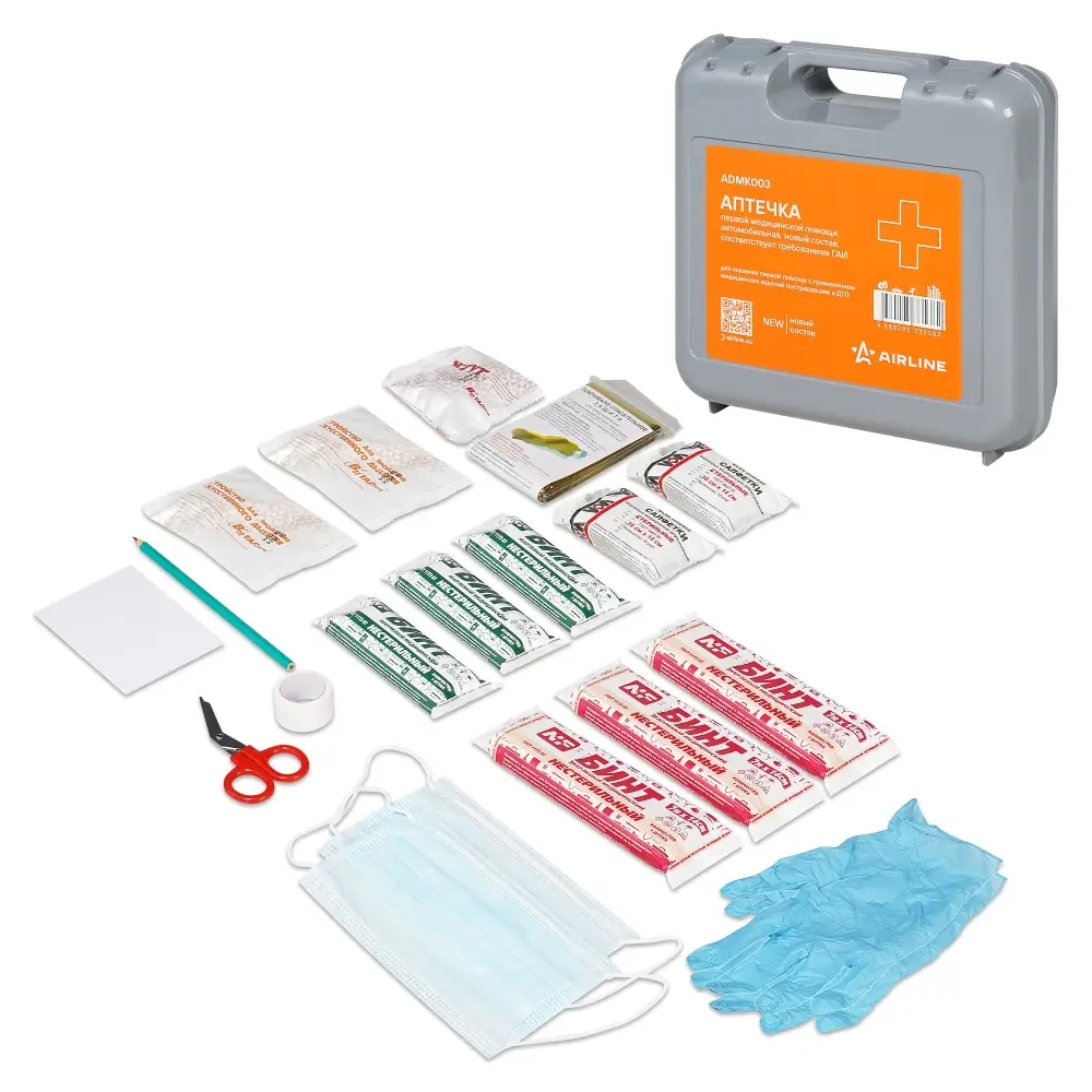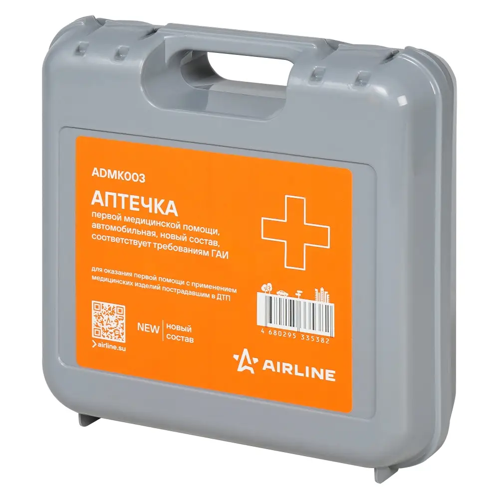 НОВЫЙ СОСТАВ. Компактный вариант автомобильной аптечки от AIRLINE представляет собой пластиковый кейс с ручкой, удобной плоской формы, изготовленный из ударопрочного пластика, укомплектованный медицинскими изделиями первой необходимости. Используется для оказания первой помощи с применением медицинских изделий пострадавшим в дорожно-транспортных происшествиях. Аптечка оснащена полным набором медицинских средств, соответствующих требованиям ГАИ. Включена в Приказ Минздрава России №260н от 24.05.2024 г.