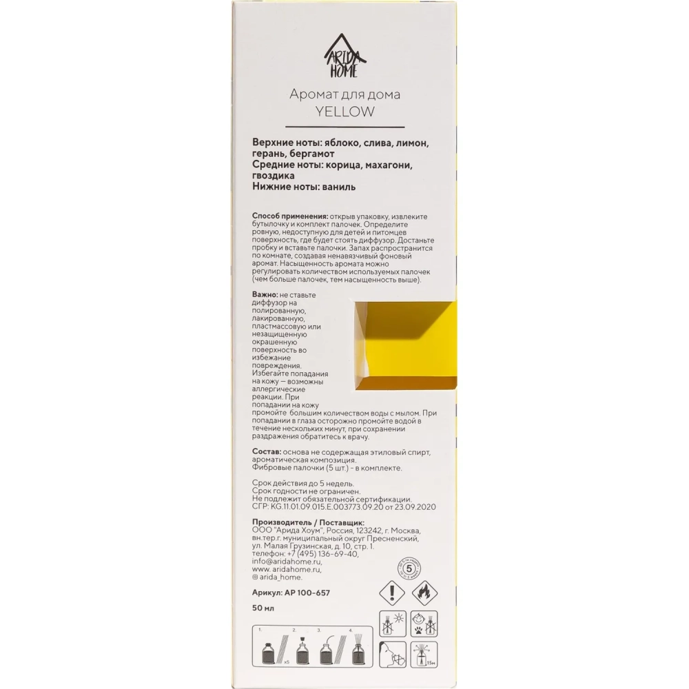 Аромадиффузор Аромат для дома Yellow 50 мл, АР 100-657