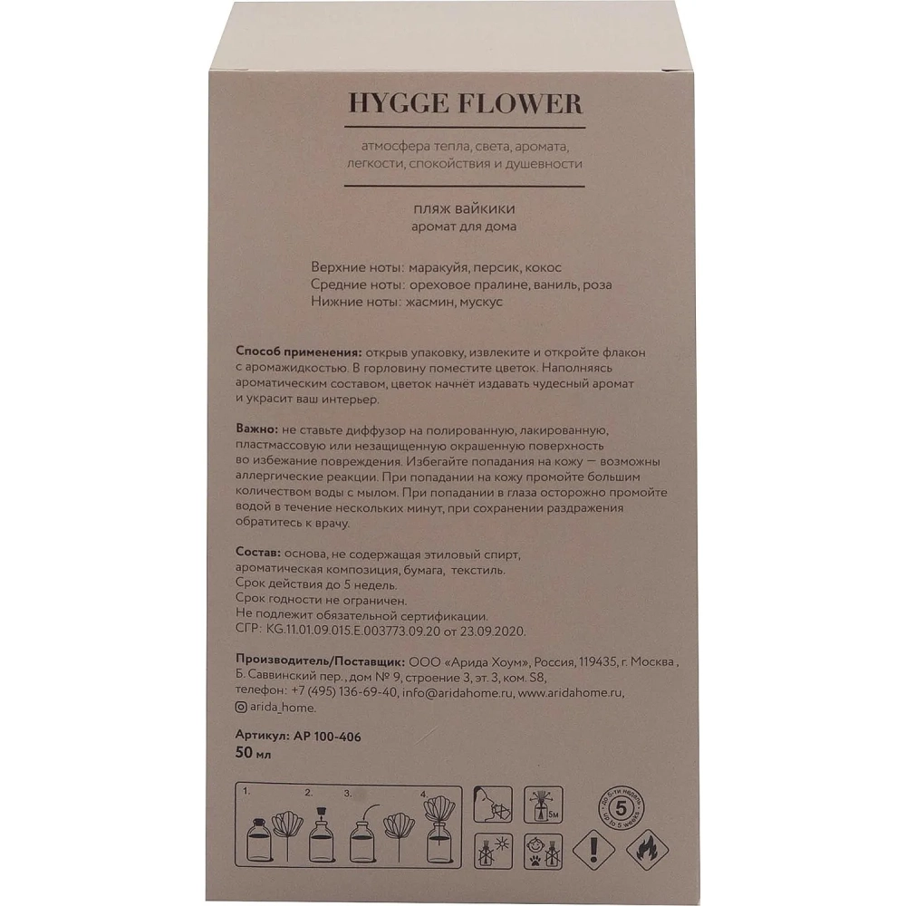 Аромадиффузор для дома Hygge Flower #11 Пляж Вайкики 50 мл, АР 100-406