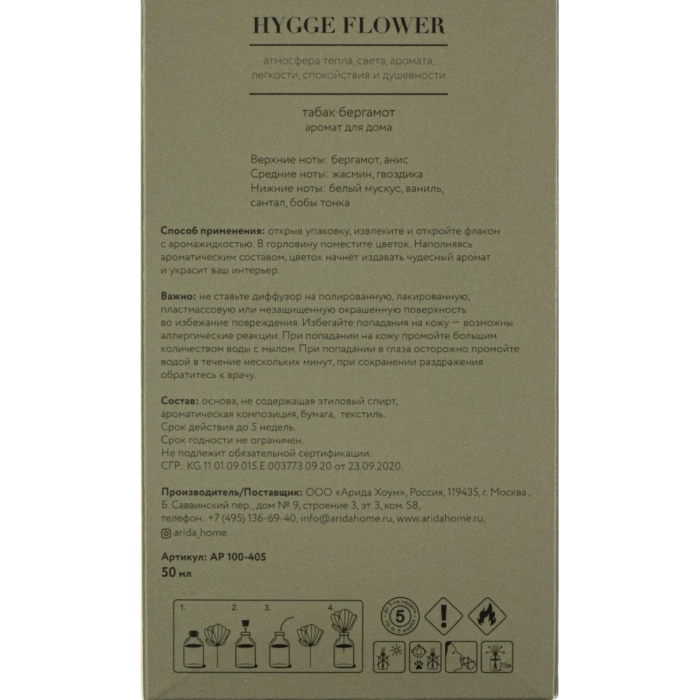 Аромадиффузор для дома Hygge Flower #3 Табак Бергамот 50м л , АР 100-405
