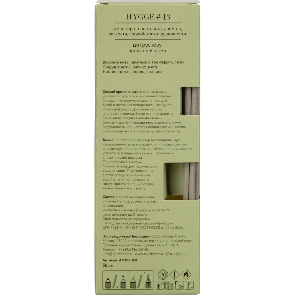 Аромадиффузор с палочками Hygge #13 Цитрус юзу 50 мл АР 100-031