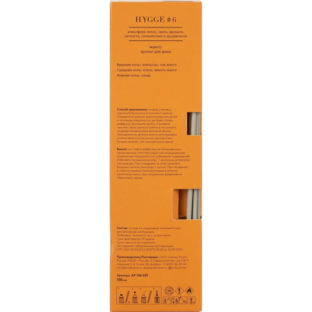 Аромадиффузор с палочками Hygge #6 Манго 100 мл
