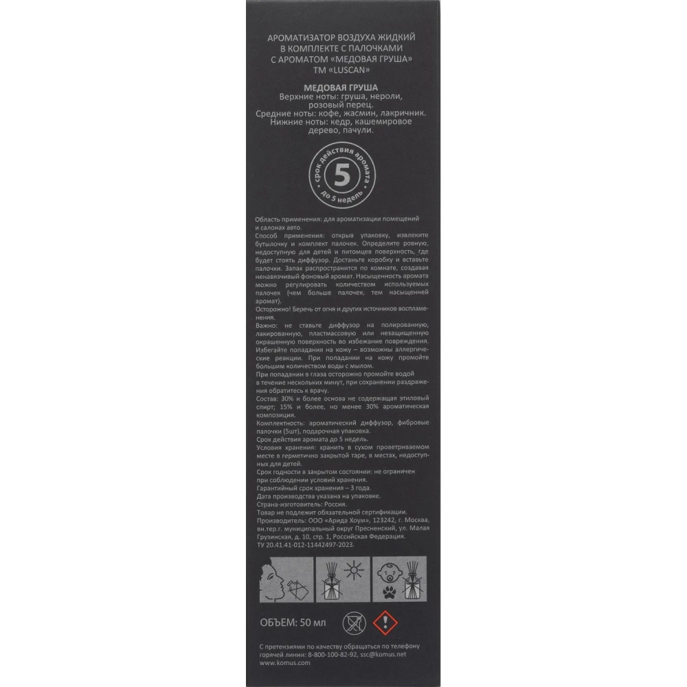 Аромадиффузор с палочками Luscan Медовая груша 50 мл