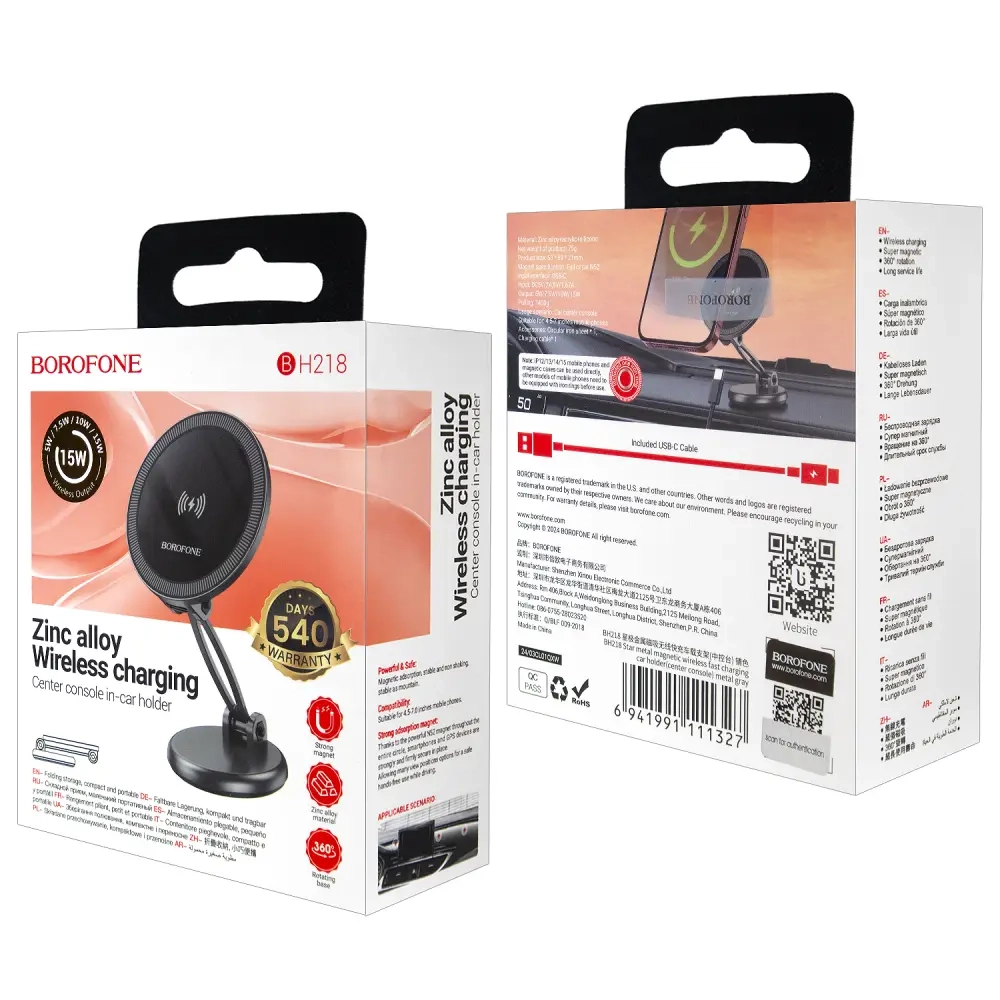 * Автодержатель BH218 с беспроводной зарядкой 15W BOROFONE