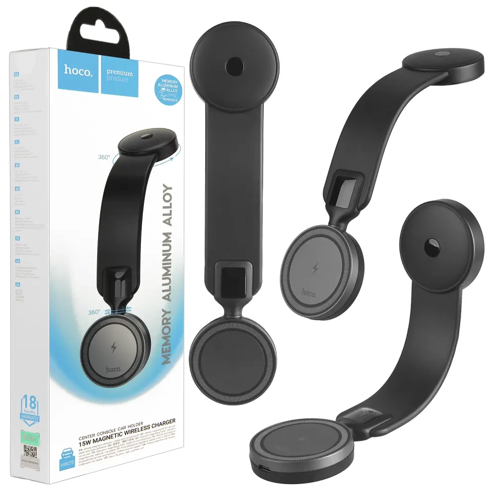 Автодержатель HW29 с беспроводной зарядкой HOCO черный