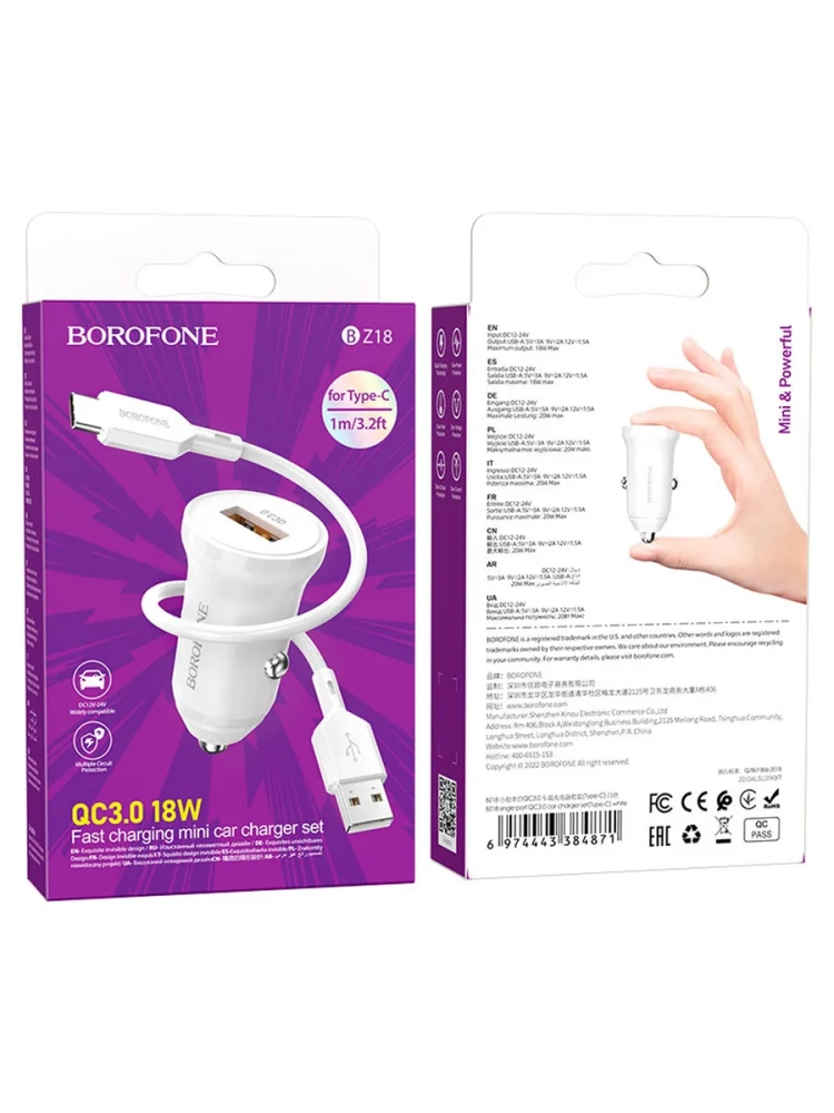 Borofone BZ18 - автомобильное зарядное устройство в стильном и компактном корпусе, которое способно быстро заряжать Ваш телефон или планшет. Зарядка в машину Borofone работает от бортовой сети с напряжением 12-24В и может использоваться во всех легковых автомобилях. Встроенная защита от скачков напряжения и короткого замыкания, защита от перегрева – делают использование универсальной автозарядки Borofone безопасной. Зарядка в прикуриватель Борофон автоматически определяет оптимальную силу тока, необходимую для эффективной и безопасной зарядки гаджета. Автозарядка для телефона в прикуриватель совместима с большинством устройств, для зарядки которых используется USB кабель.