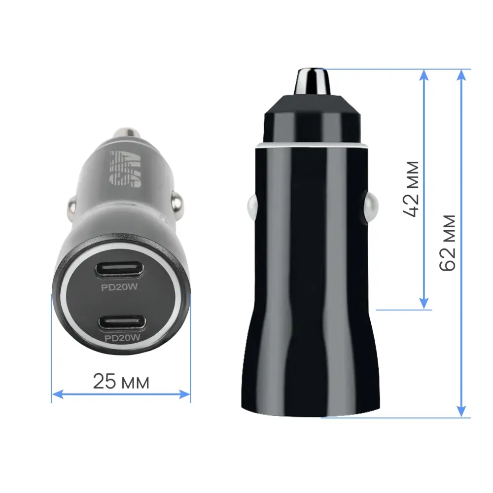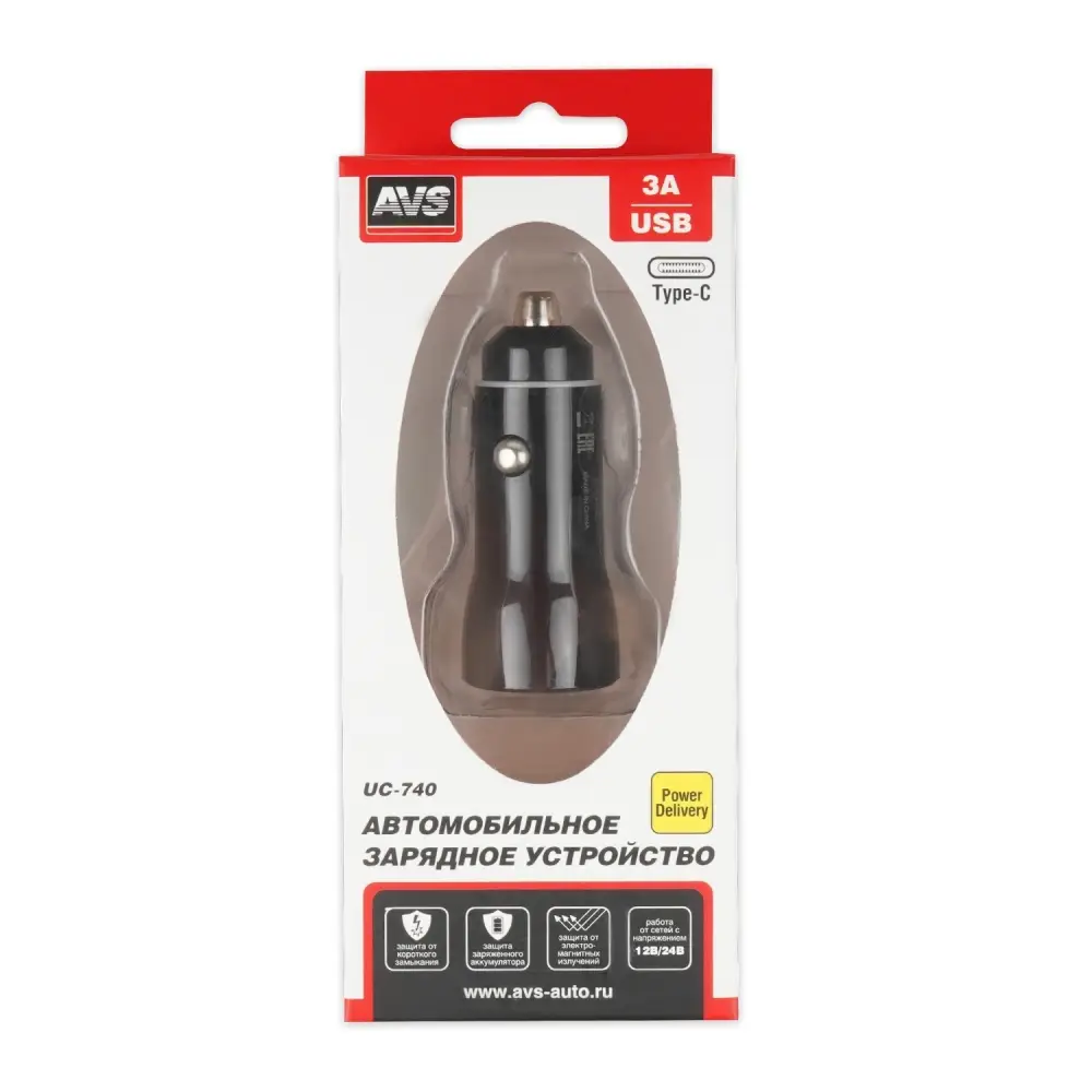 Автомобильное ЗУ AVS UC-740, 2 PD Type-C, 6.0 А, 40 Вт (A07318S)