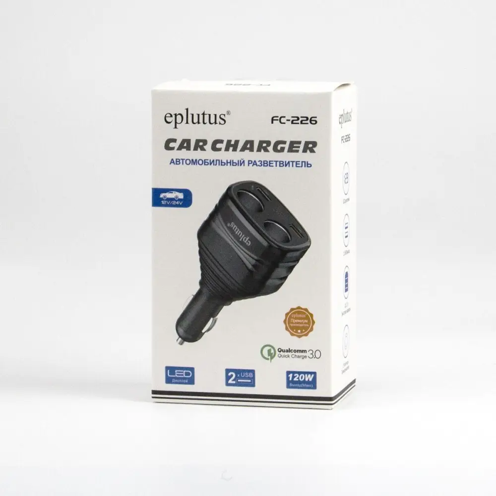 Автомобильный разветвитель прикуривателя модели Eplutus FC-226 позволяет одновременно запитывать гаджеты общей мощностью не более 120Вт, подключая их к собственной электросети автомобиля (12-24В DC). Устройство оснащено двумя USB разъемами и двумя выходными розетками 12В.